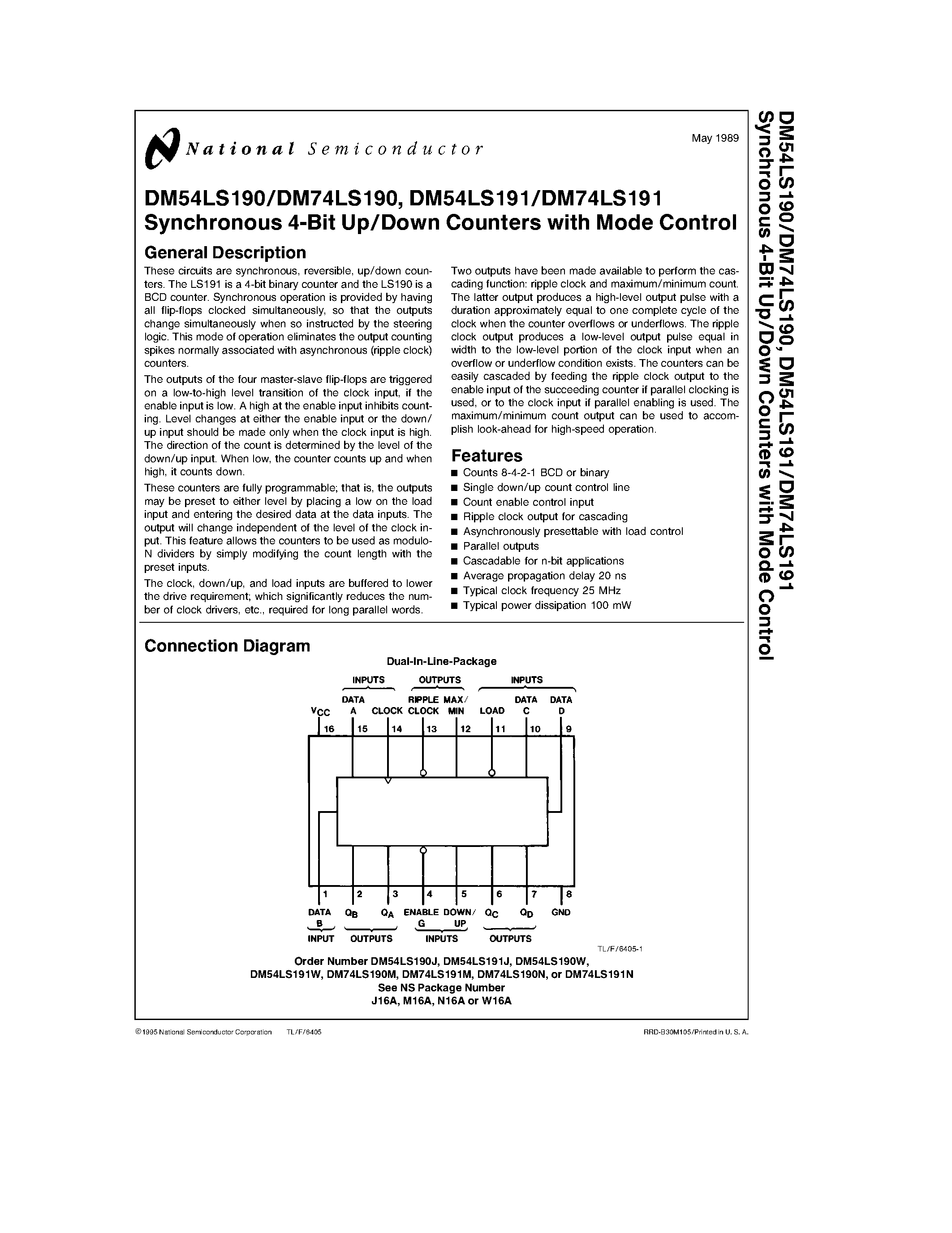 DM74LS190-(DM74LS190 / DM74LS191) Synchronous 4-Bit Up/Down Counters with Mode Control