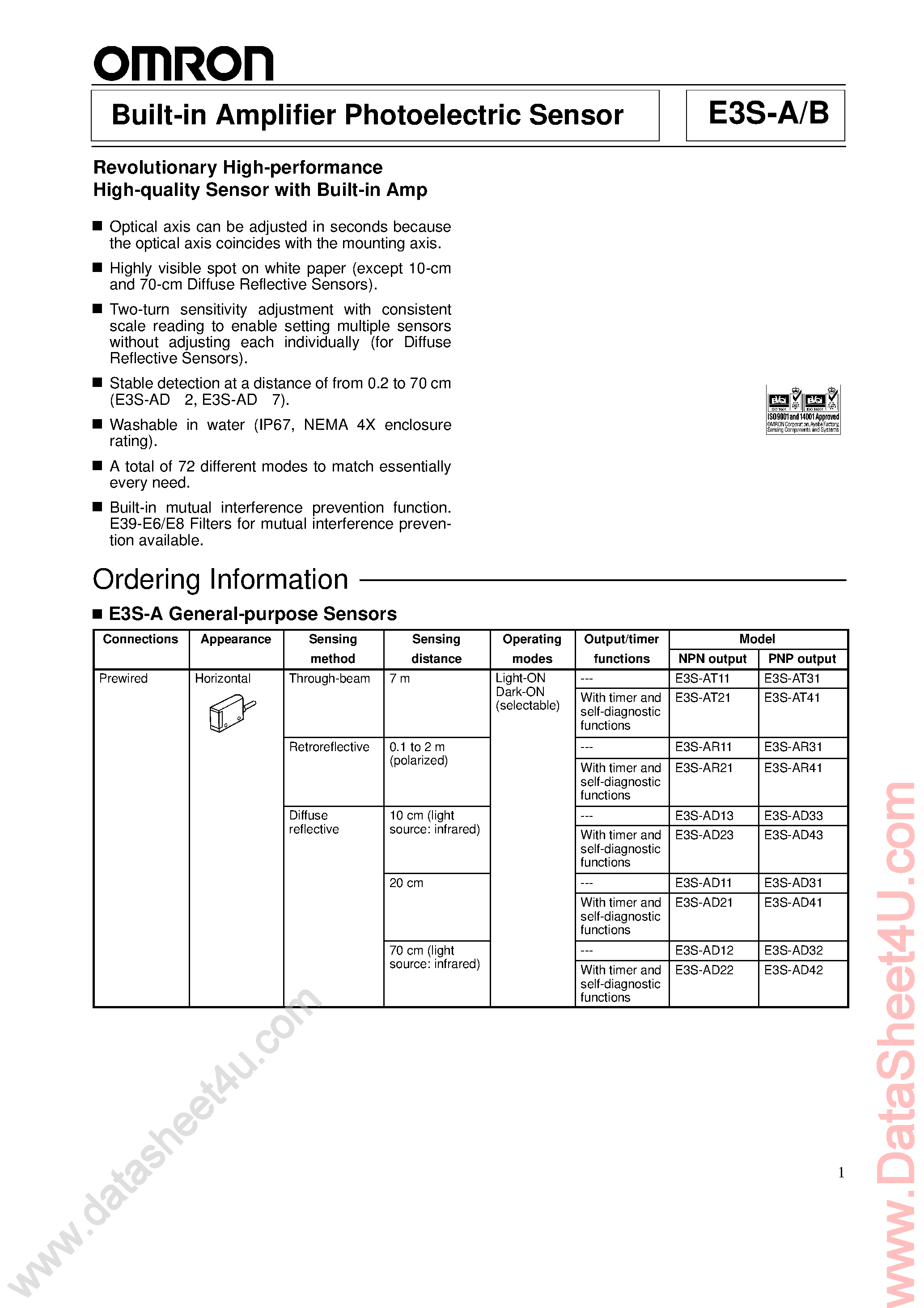 Даташиты (Datasheets E3S-A) электронных компонентов