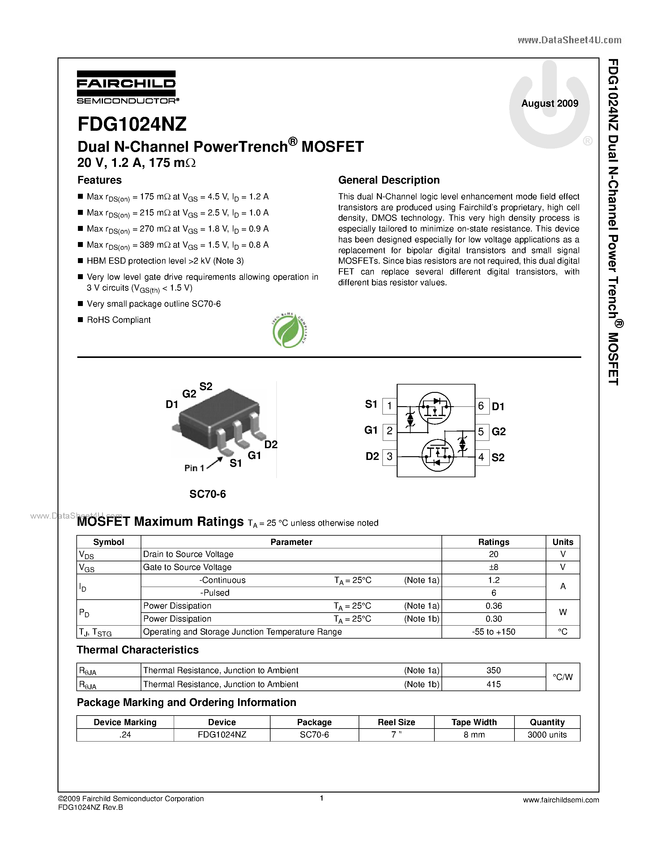 Даташиты (Datasheets FDG1024NZ) электронных компонентов