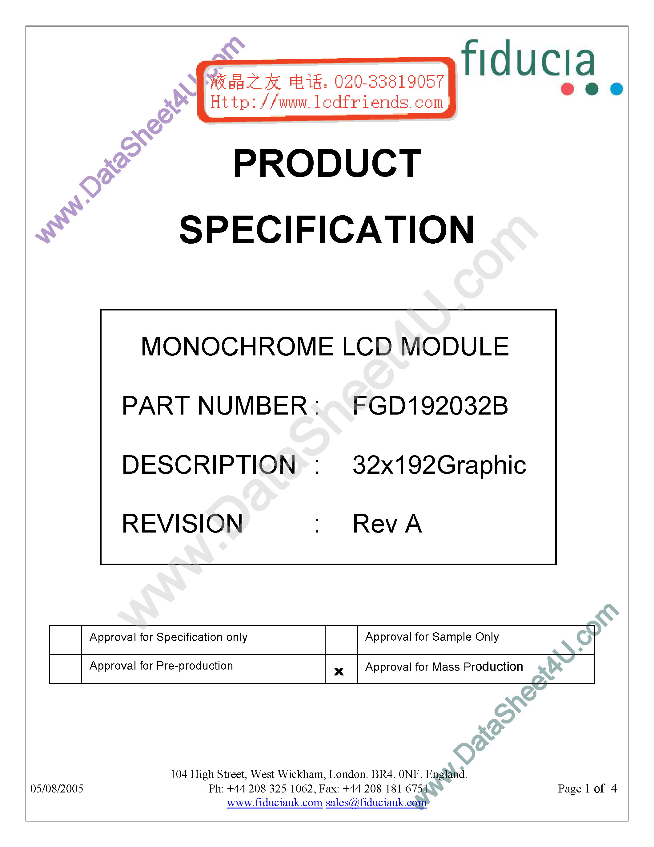 Даташиты (Datasheets FDG192032B) электронных компонентов