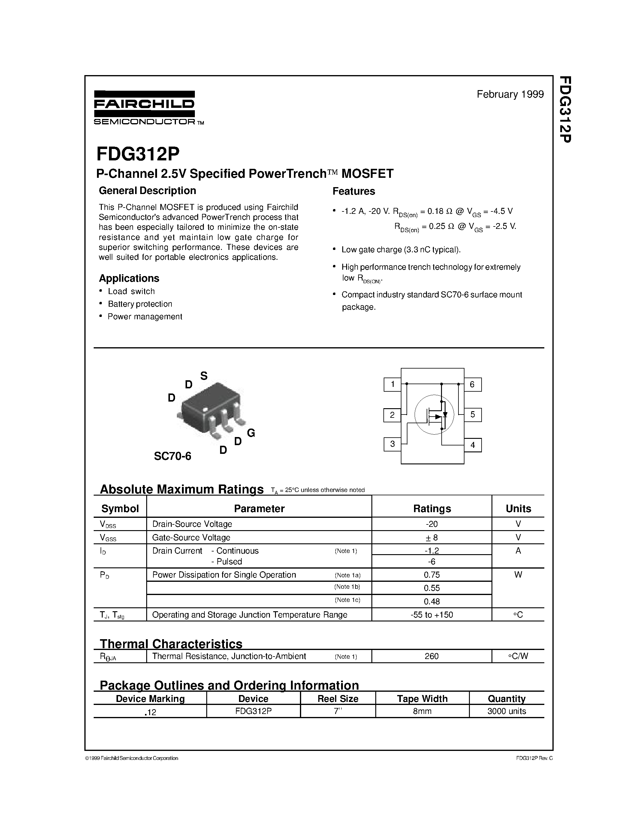 Даташиты (Datasheets FDG312P) электронных компонентов
