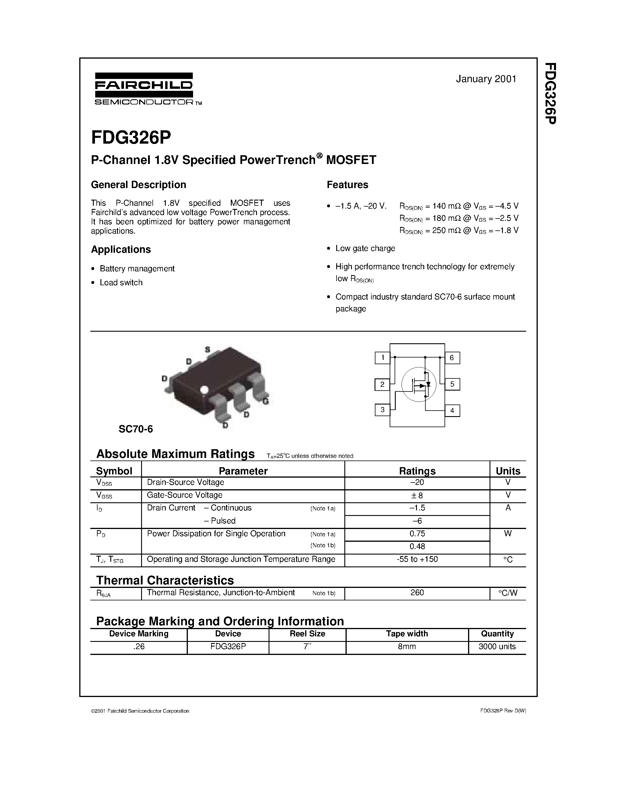 FDG326-P-Channel 1.8V Specified PowerTrench MOSFET