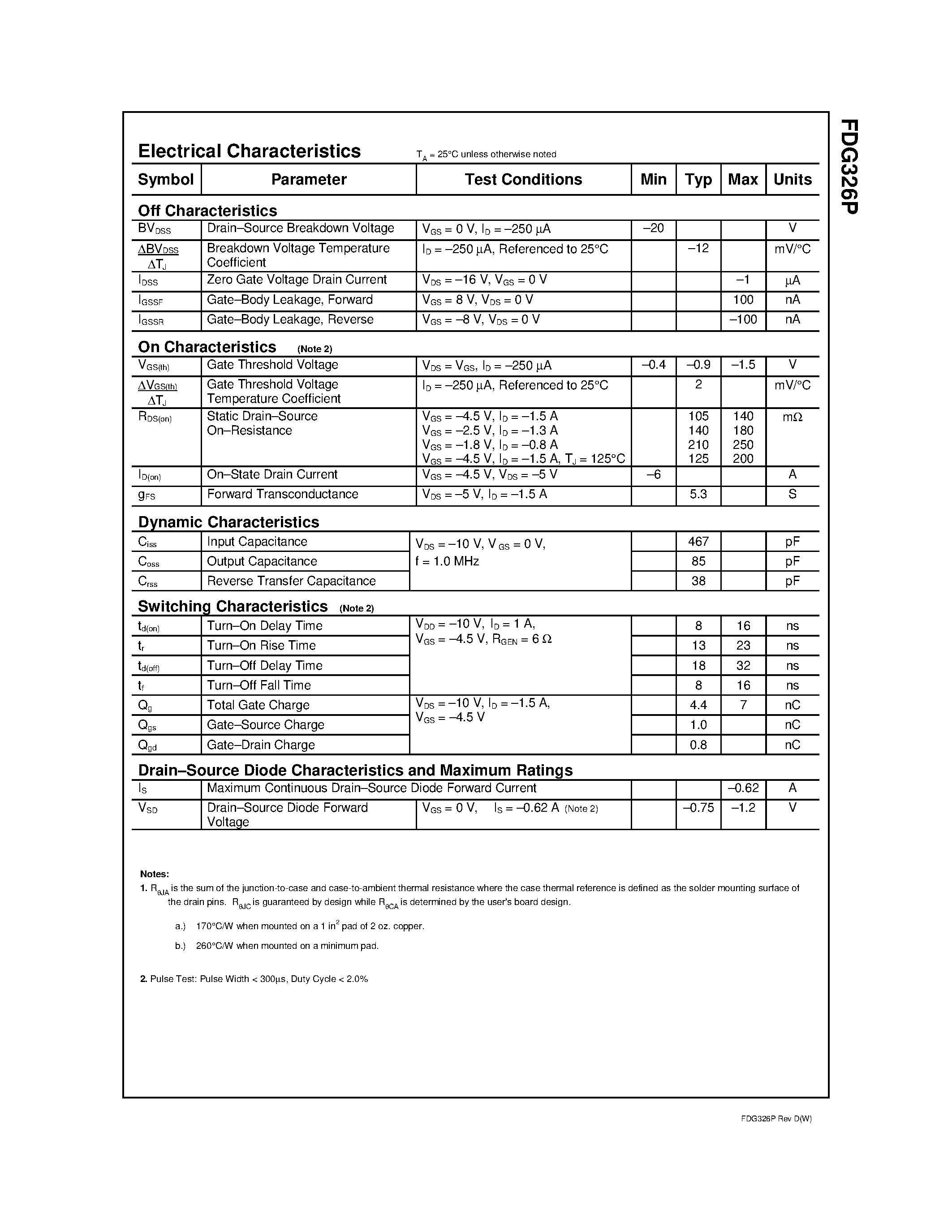 Даташиты (Datasheets FDG326) электронных компонентов
