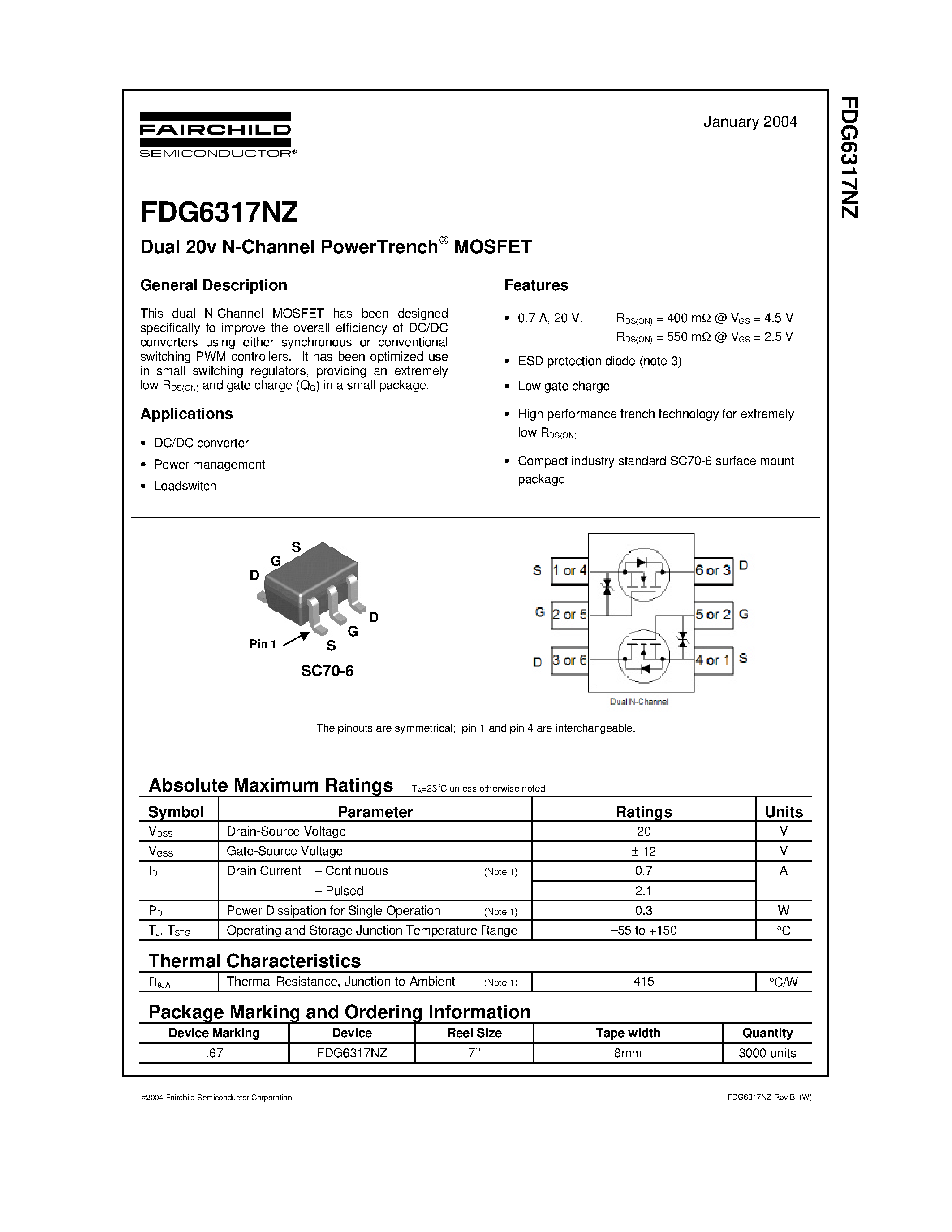 Даташиты (Datasheets FDG6317NZ) электронных компонентов
