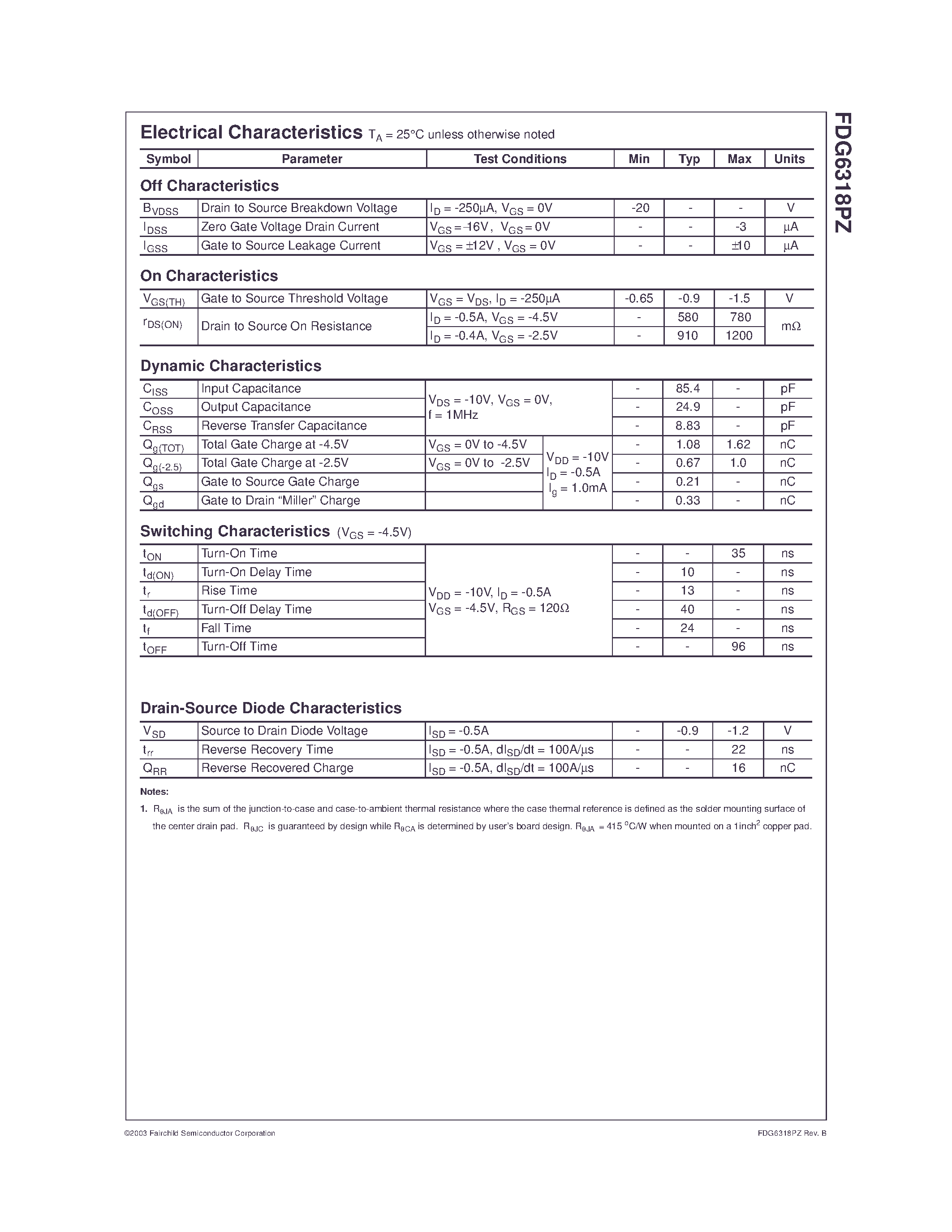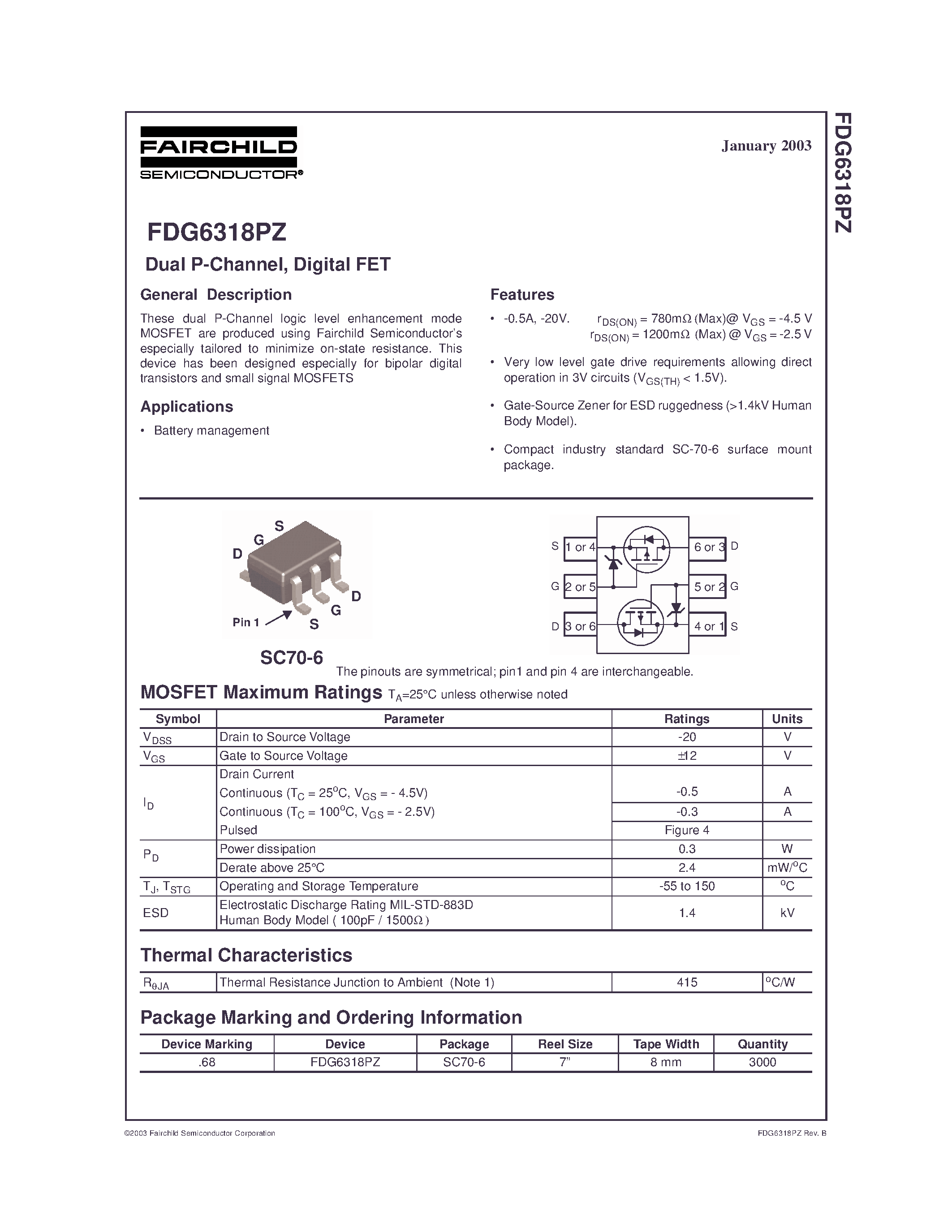 Даташиты (Datasheets FDG6318PZ) электронных компонентов