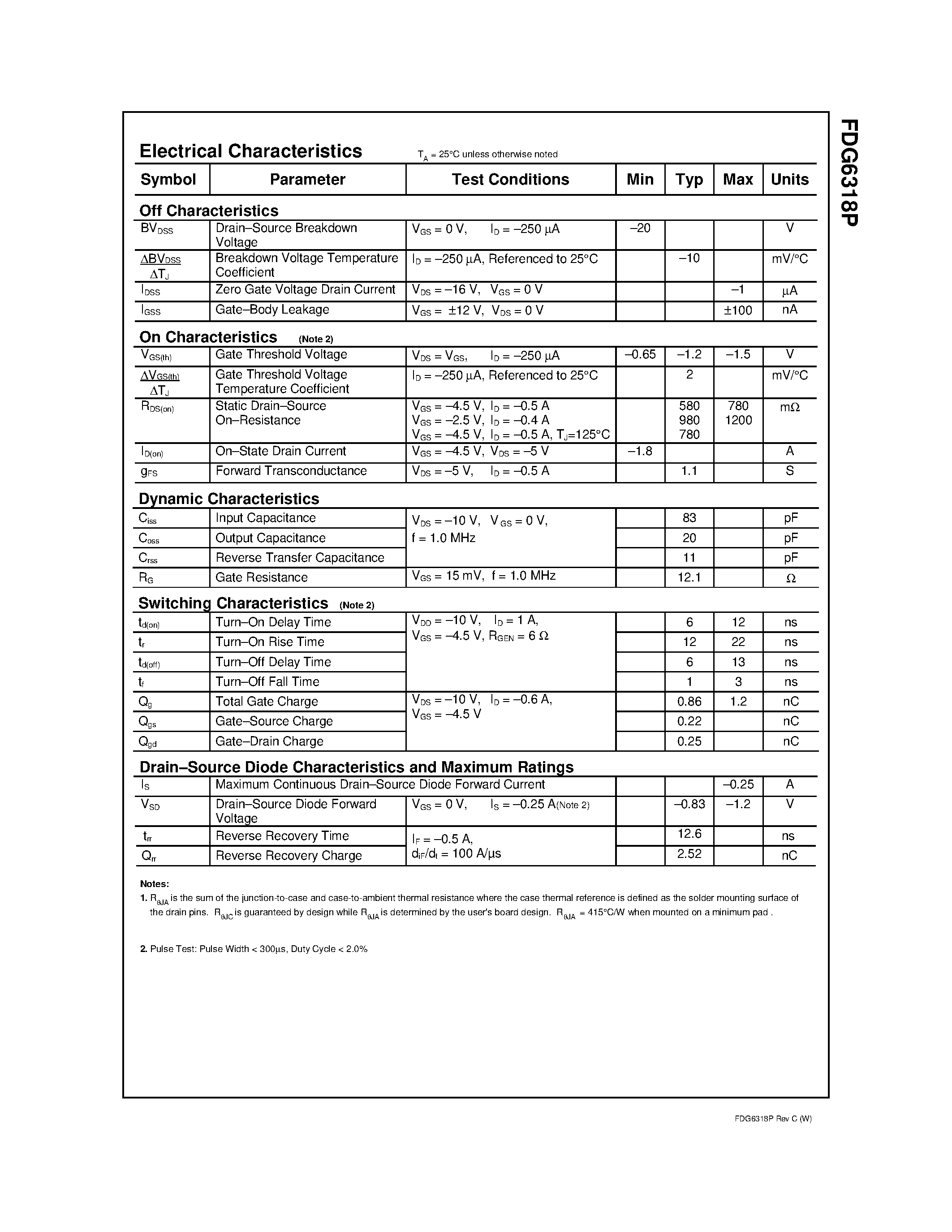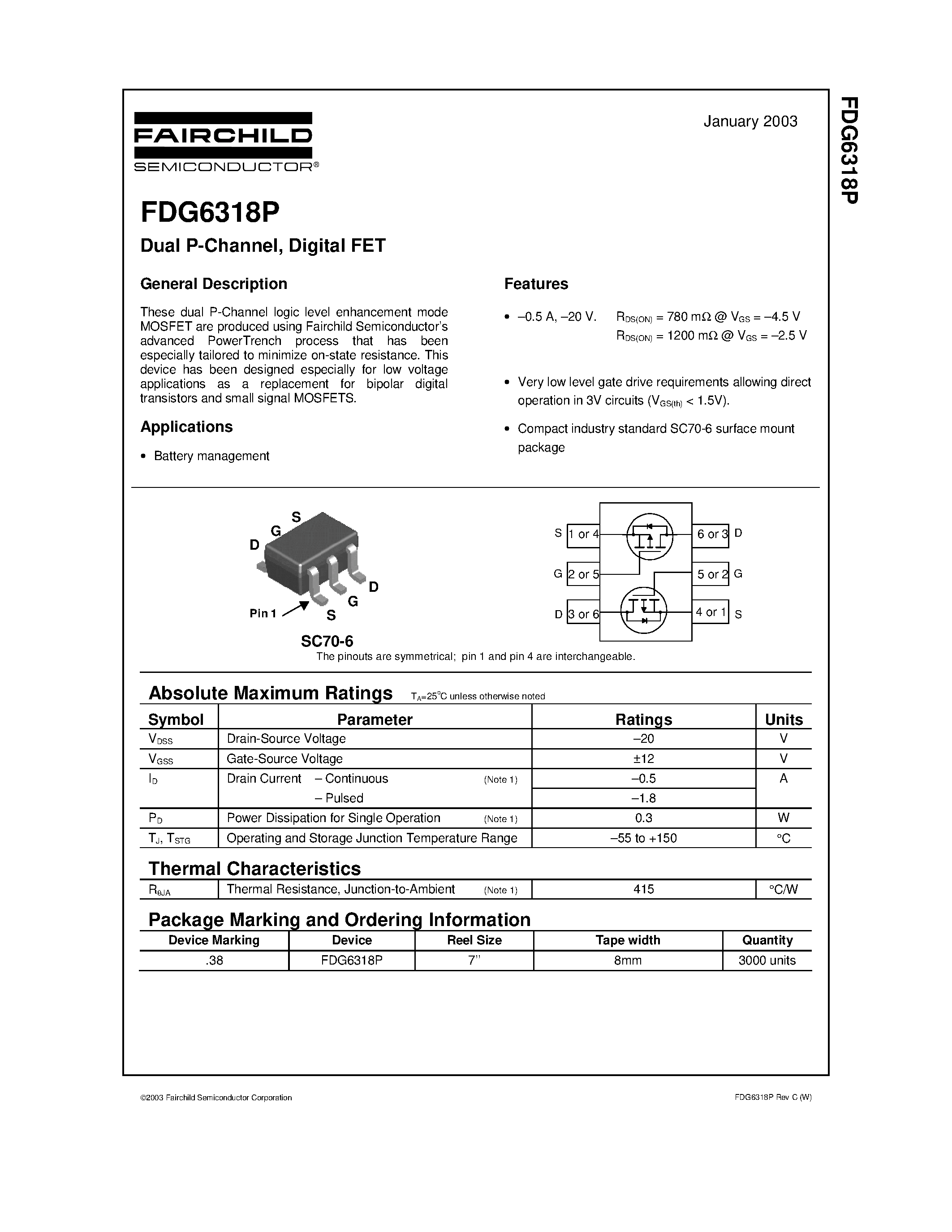 Даташиты (Datasheets FDG6318P) электронных компонентов