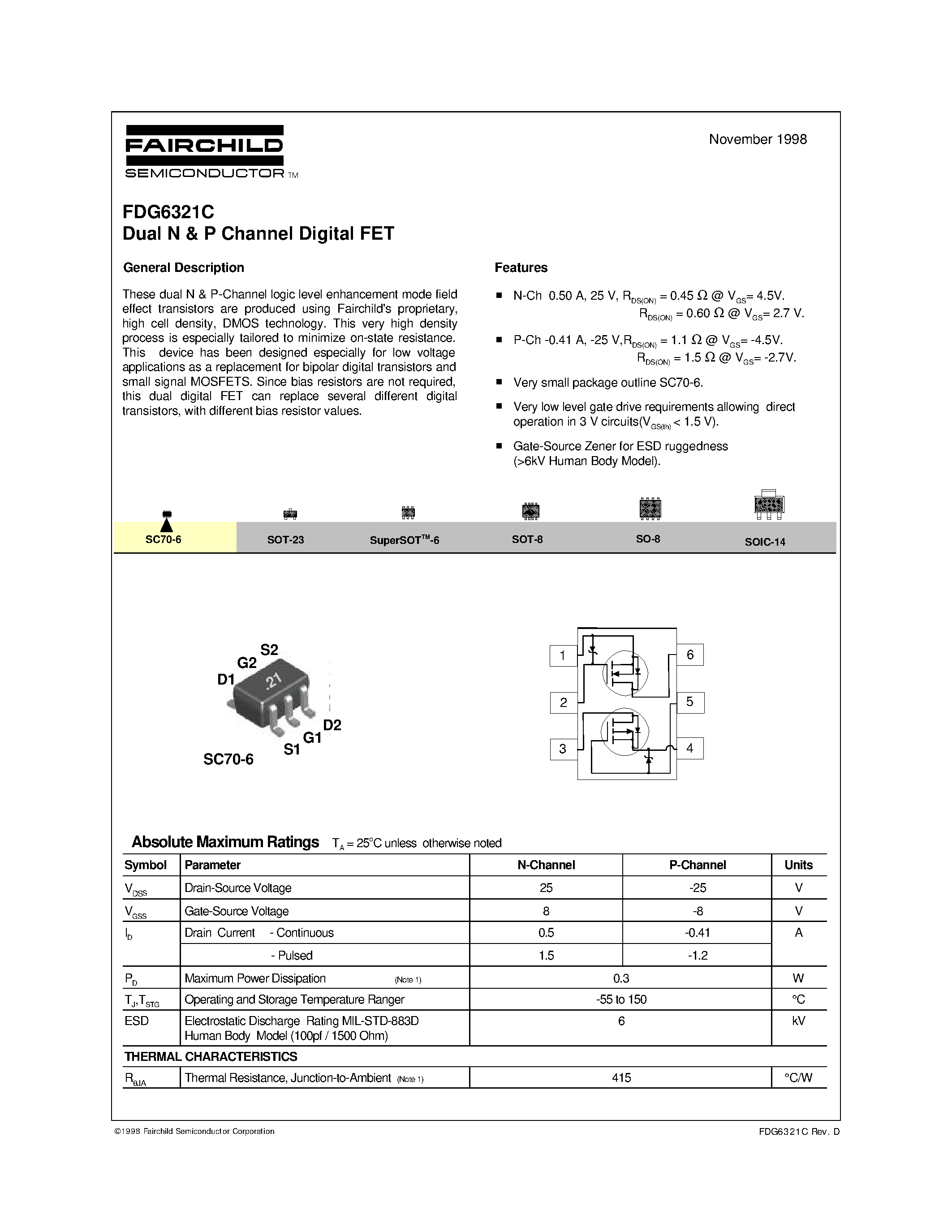 Даташиты (Datasheets FDG6321) электронных компонентов