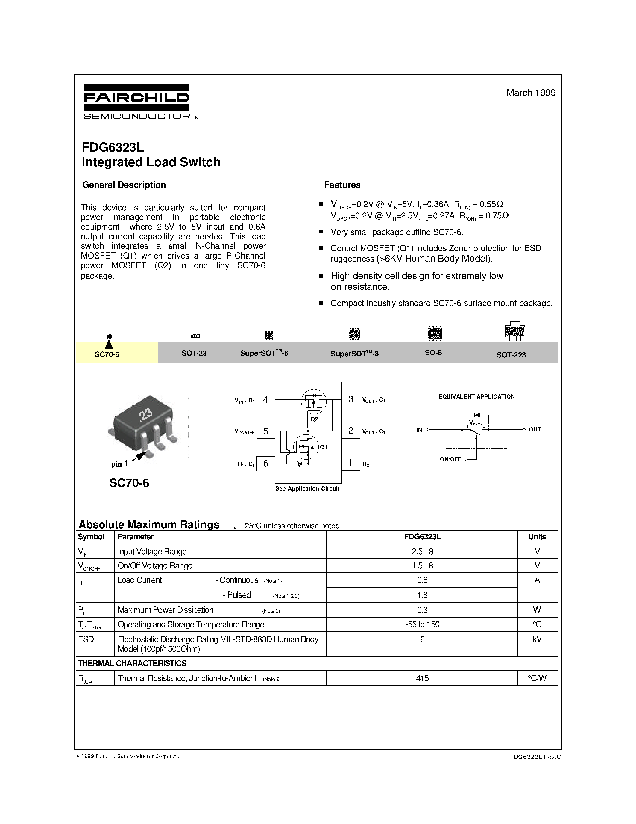 Даташиты (Datasheets FDG6323L) электронных компонентов