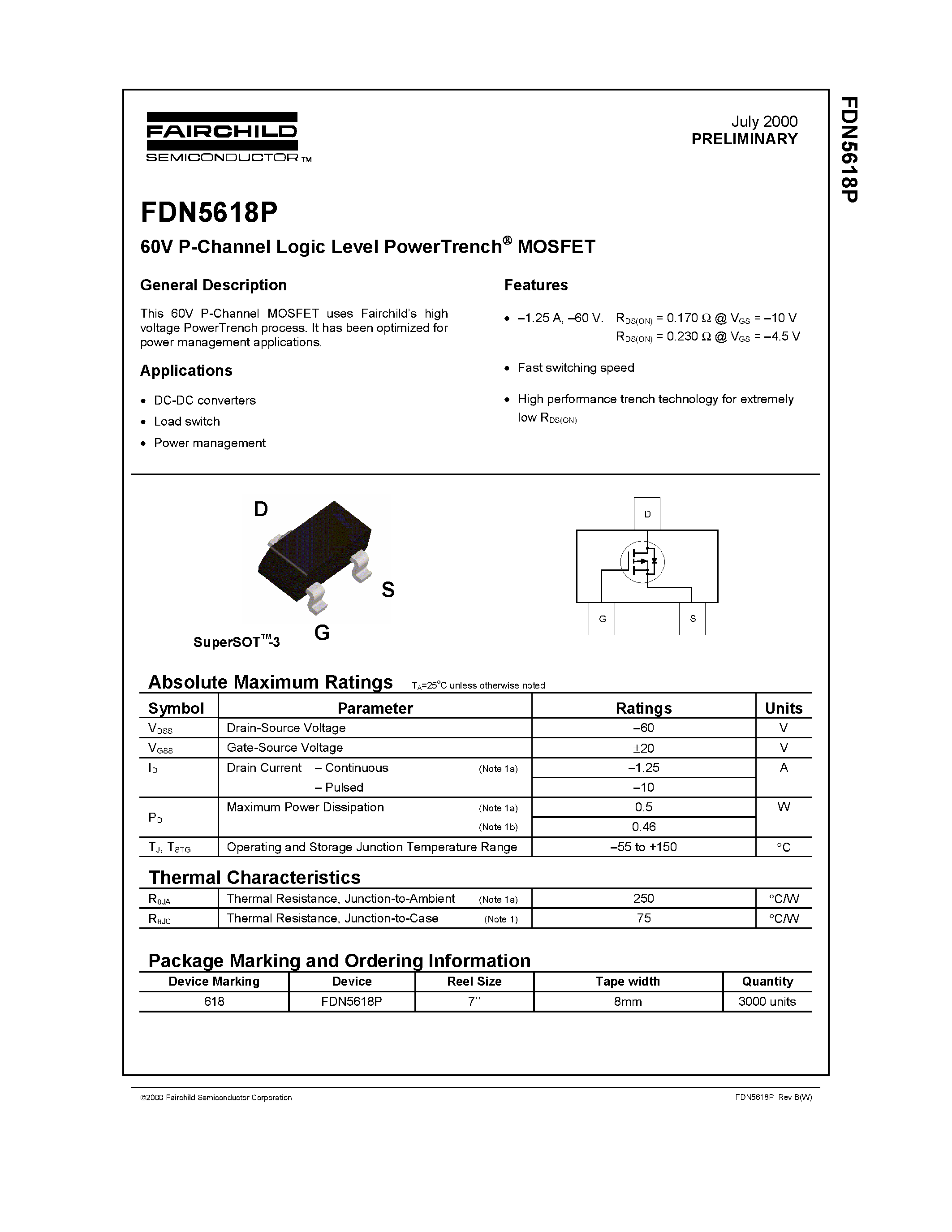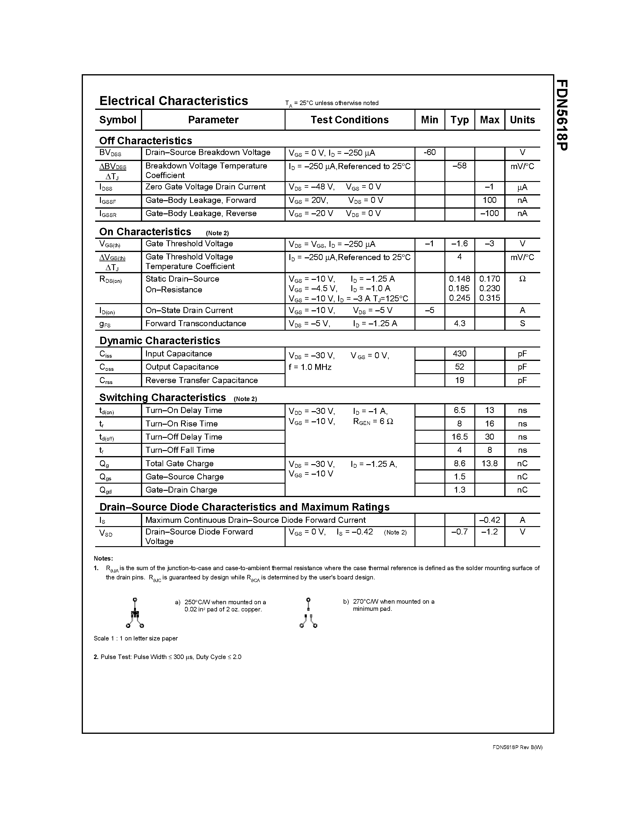 Даташиты (Datasheets FDN5618P) электронных компонентов