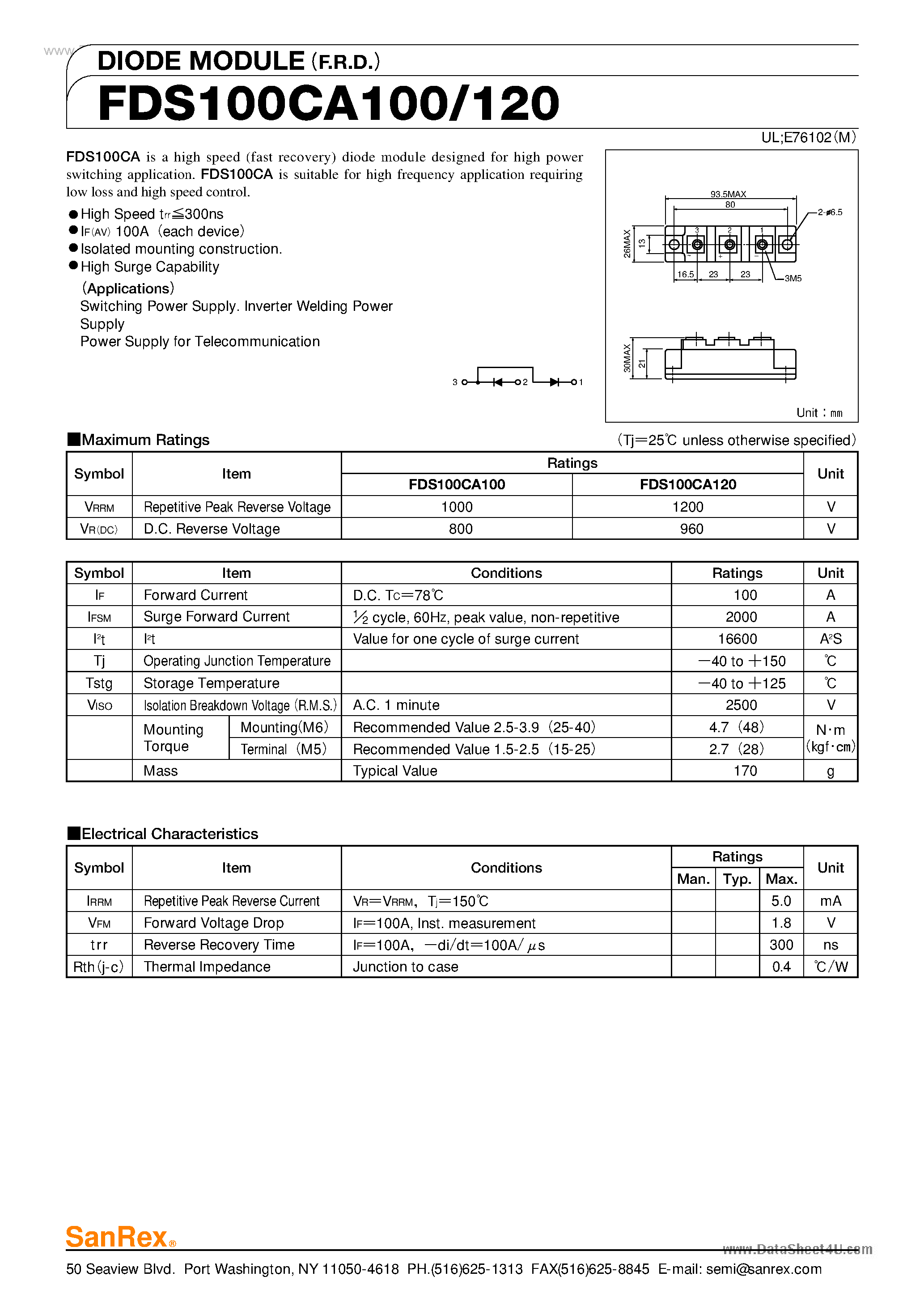 FDS100CA100-(FDS100CA100 / FDS100CA120) DIODE MODULE