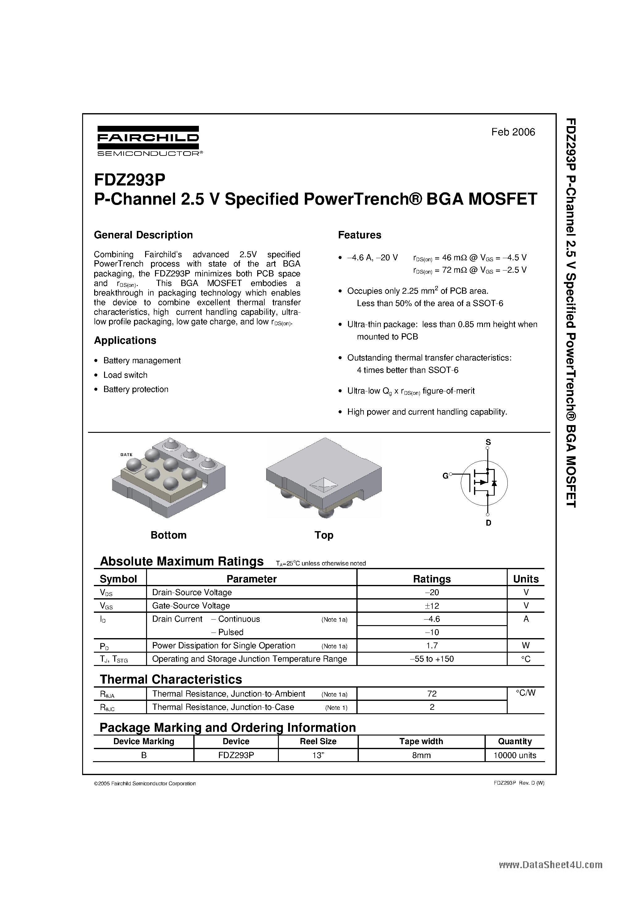 Даташиты (Datasheets FDZ293P) электронных компонентов