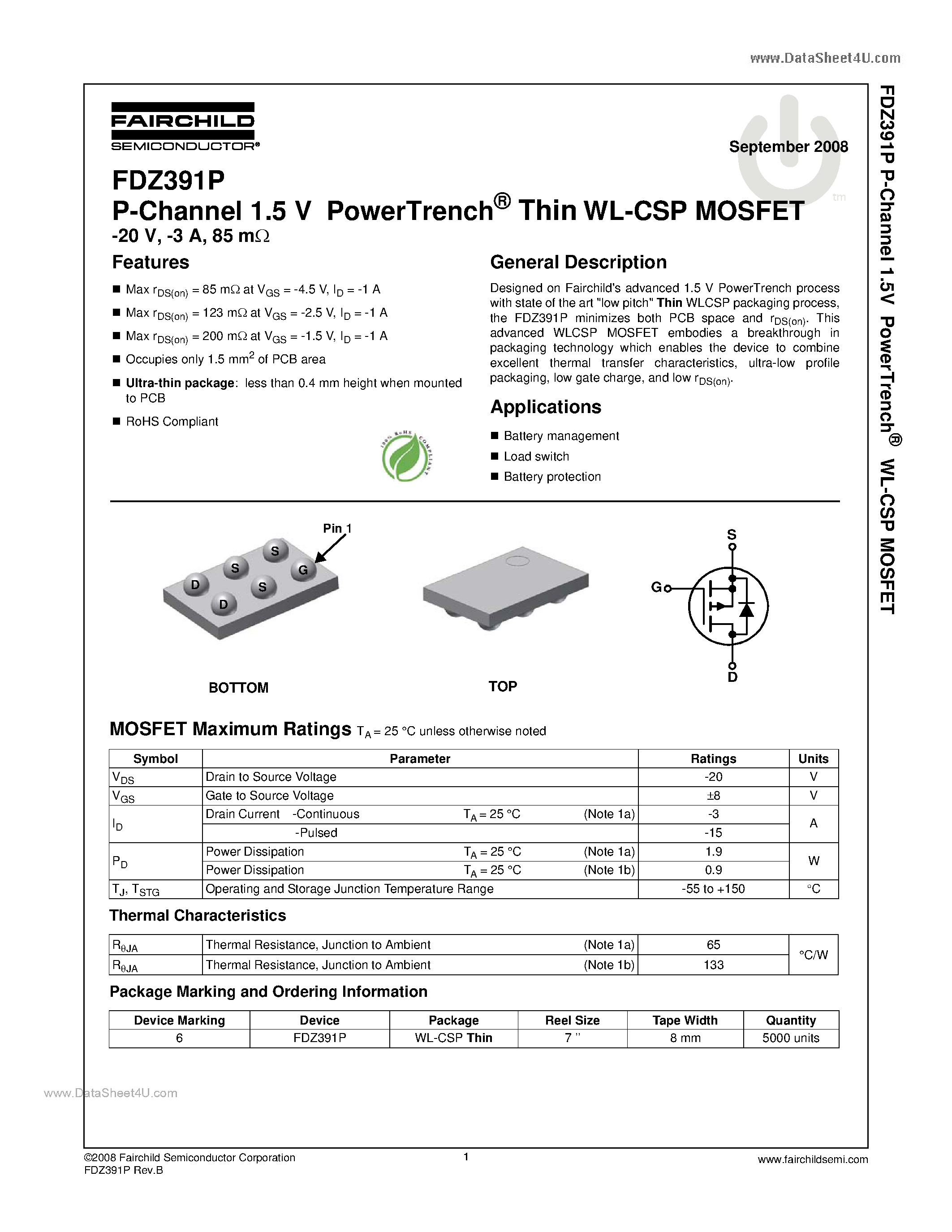 Даташиты (Datasheets FDZ391P) электронных компонентов