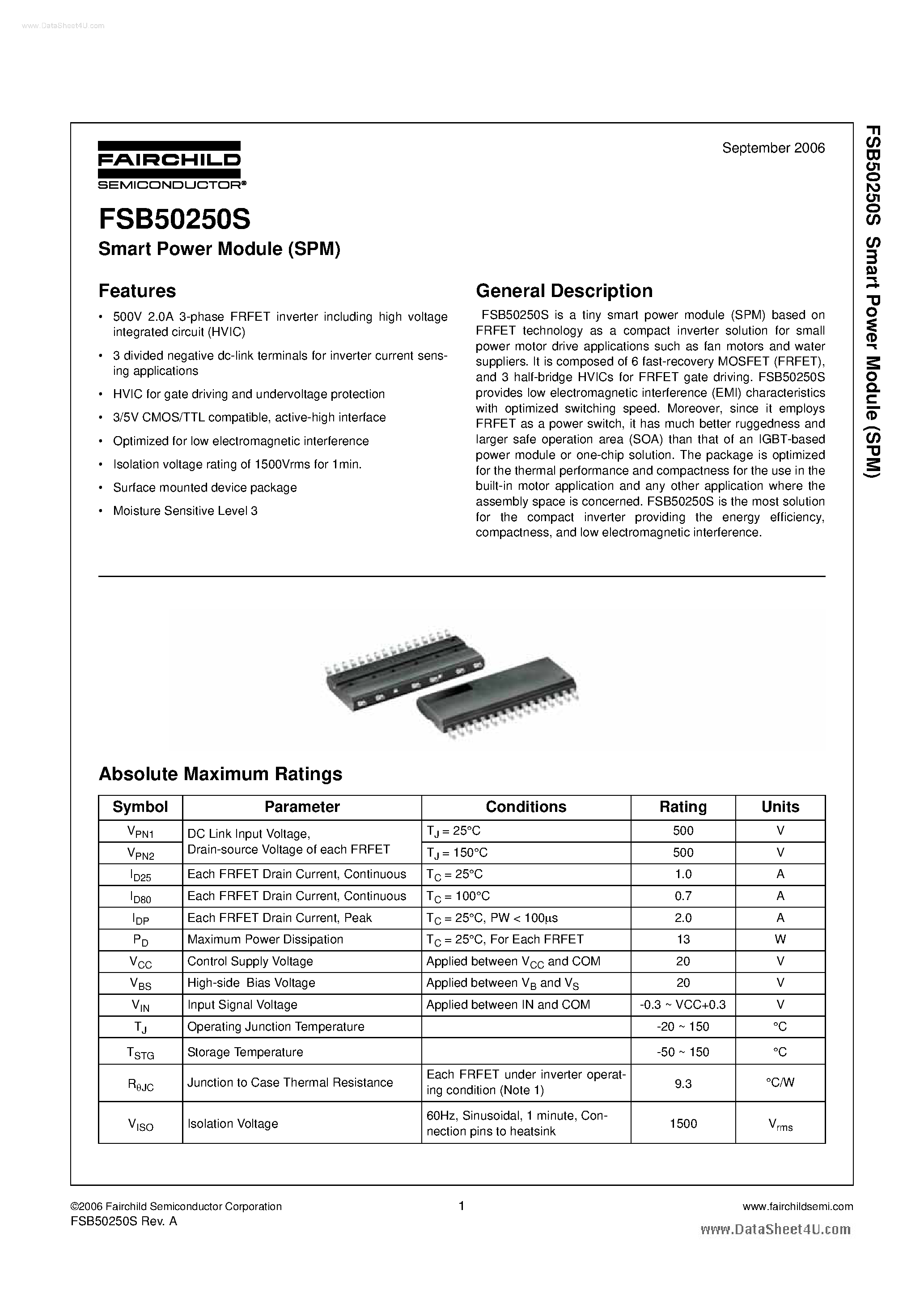 Даташиты (Datasheets FSB50250S) электронных компонентов