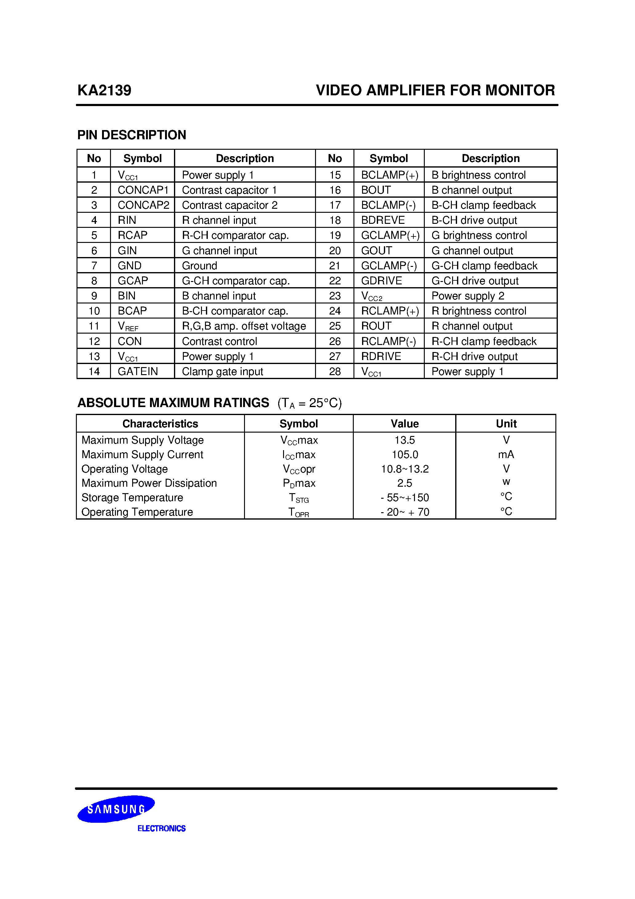 KA2139-3 CHANNEL R.G.B VIDEO AMPLIFIER
