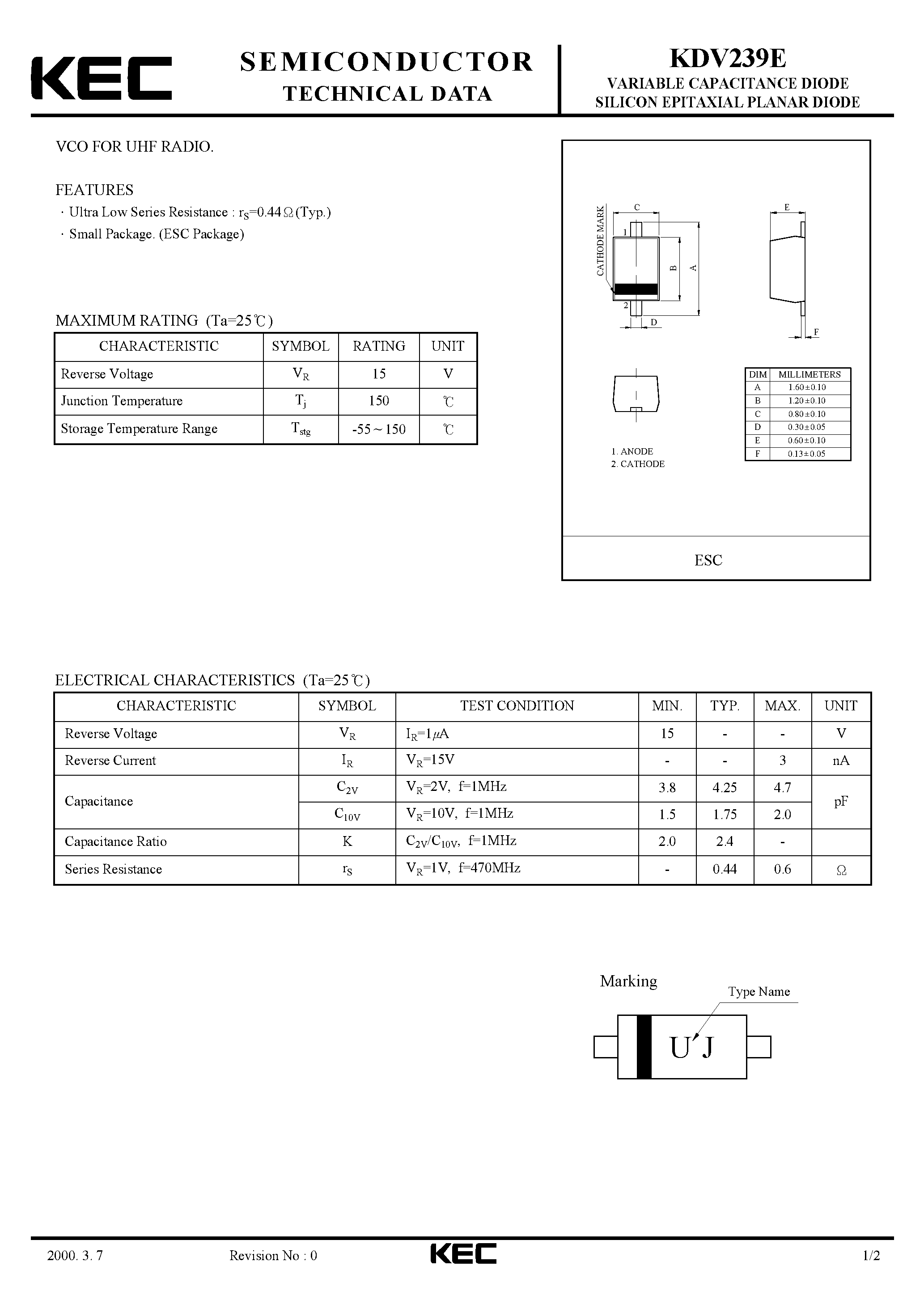 KDV239E-VARIABLE CAPACITANCE DIODE SILICON EPITAXIAL PLANAR DIODE(VCO FOR UHF RADIO)