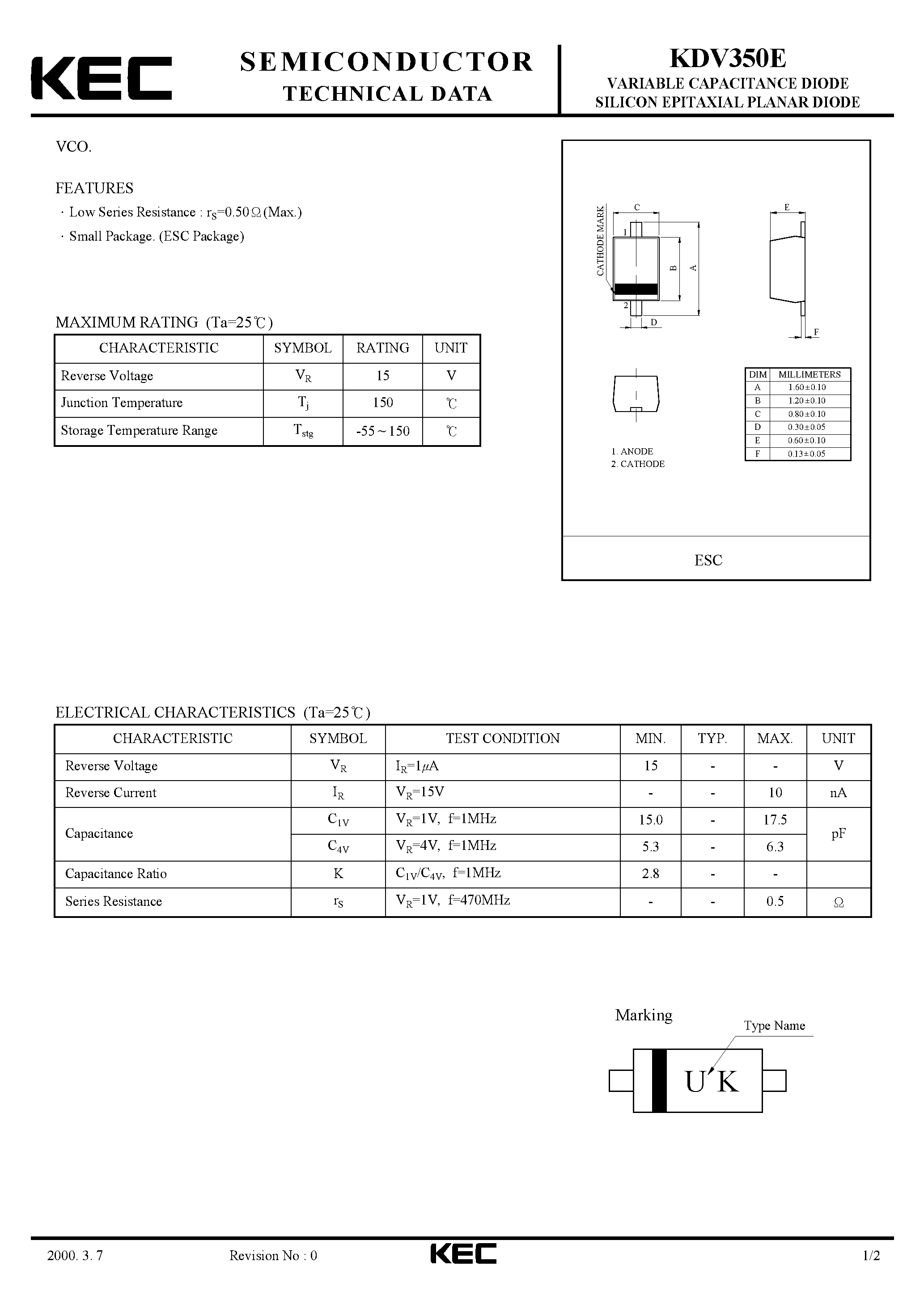 KDV350E-VARIABLE CAPACITANCE DIODE SILICON EPITAXIAL PLANAR DIODE(VCO)