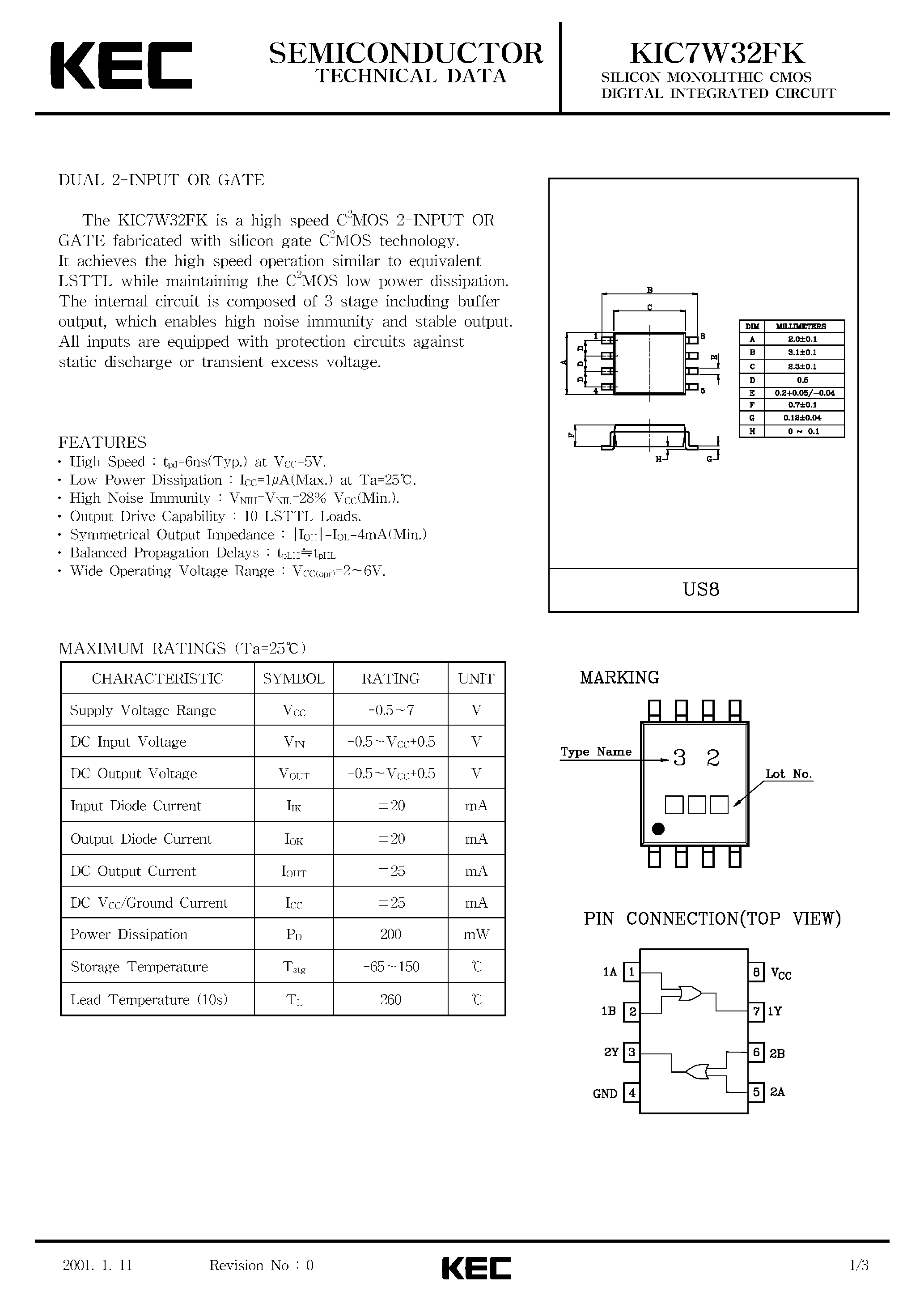 KIC7W32FK-SILICON MONOLITHIC CMOS DIGITAL INTEGRATED CIRCUIT(DAUL 2-INPUT OR GATE)