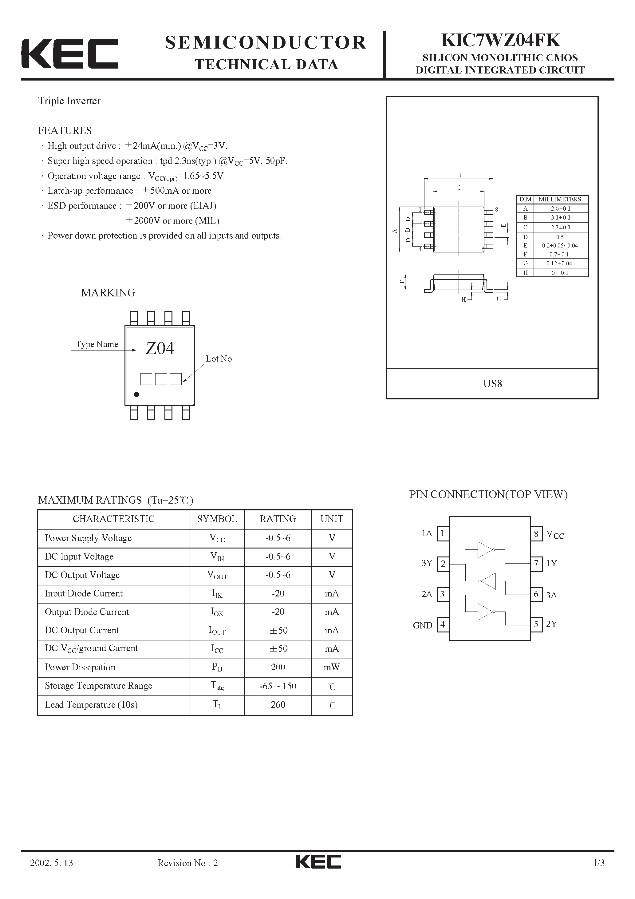 Даташиты (Datasheets KIC7WZ04FK) электронных компонентов