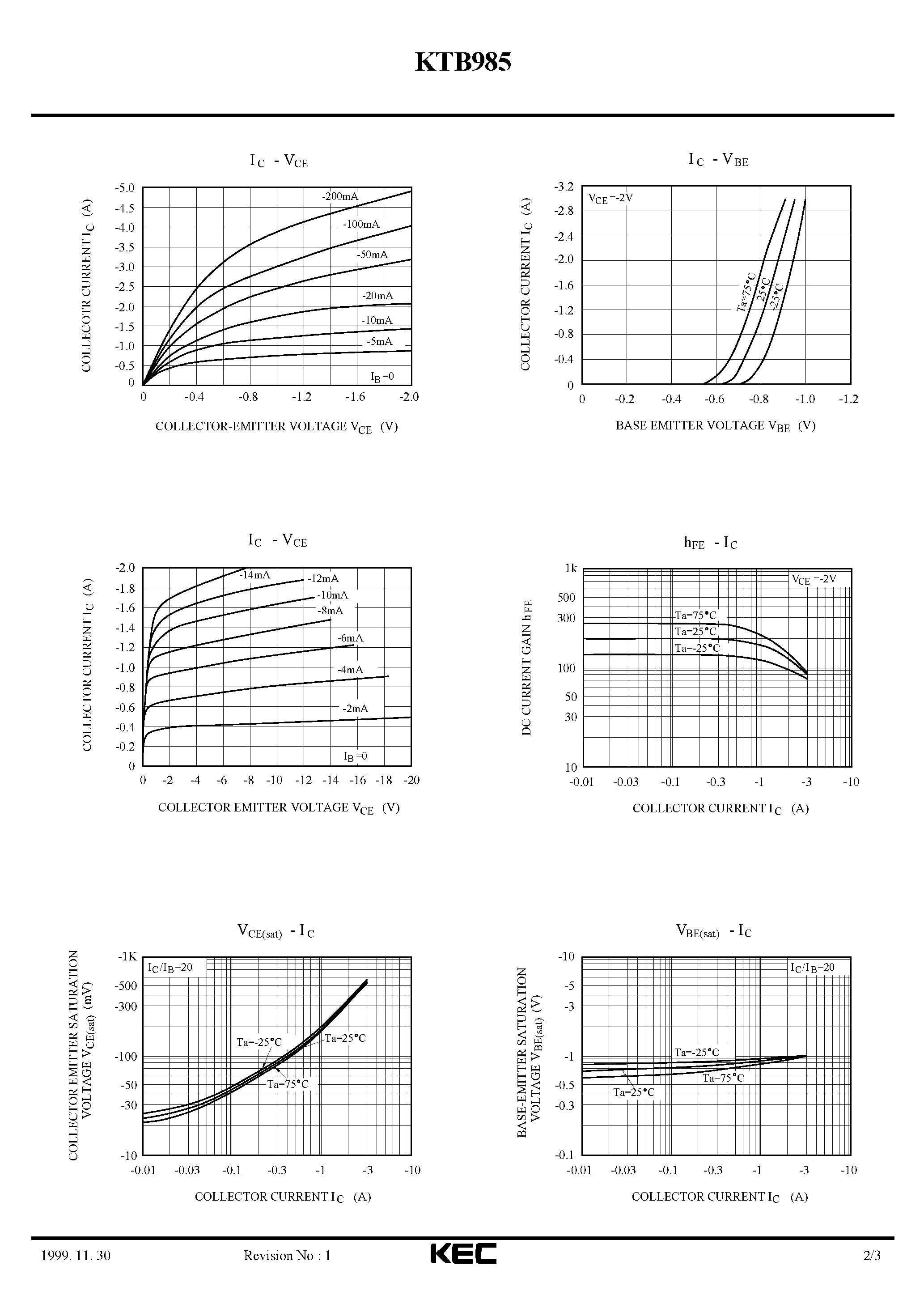 KTB985-EPITAXIAL PLANAR PNP TRANSISTOR (VOLTAGE REGULATOR RELAY DRIVERS LAMP DRIVER/ ELECTRICAL EQUIPMENT)