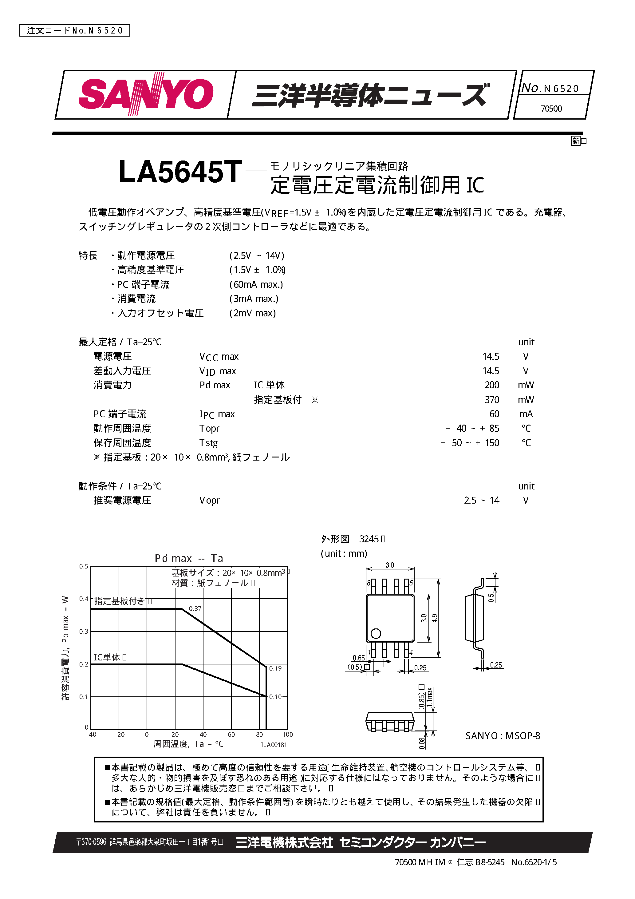 Даташиты (Datasheets LA5645T) электронных компонентов