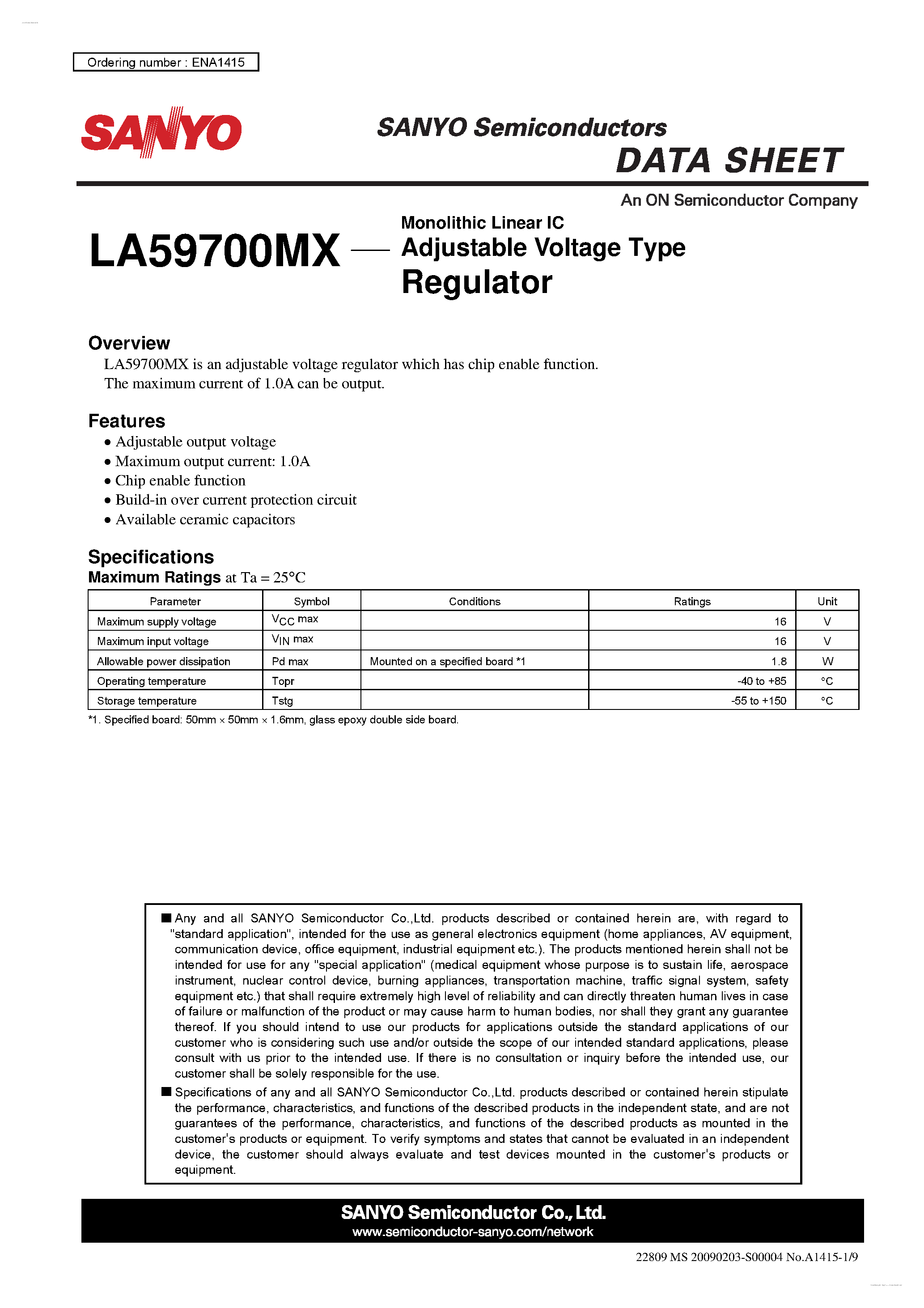 LA59700MX-Adjustable Voltage Type Regulator