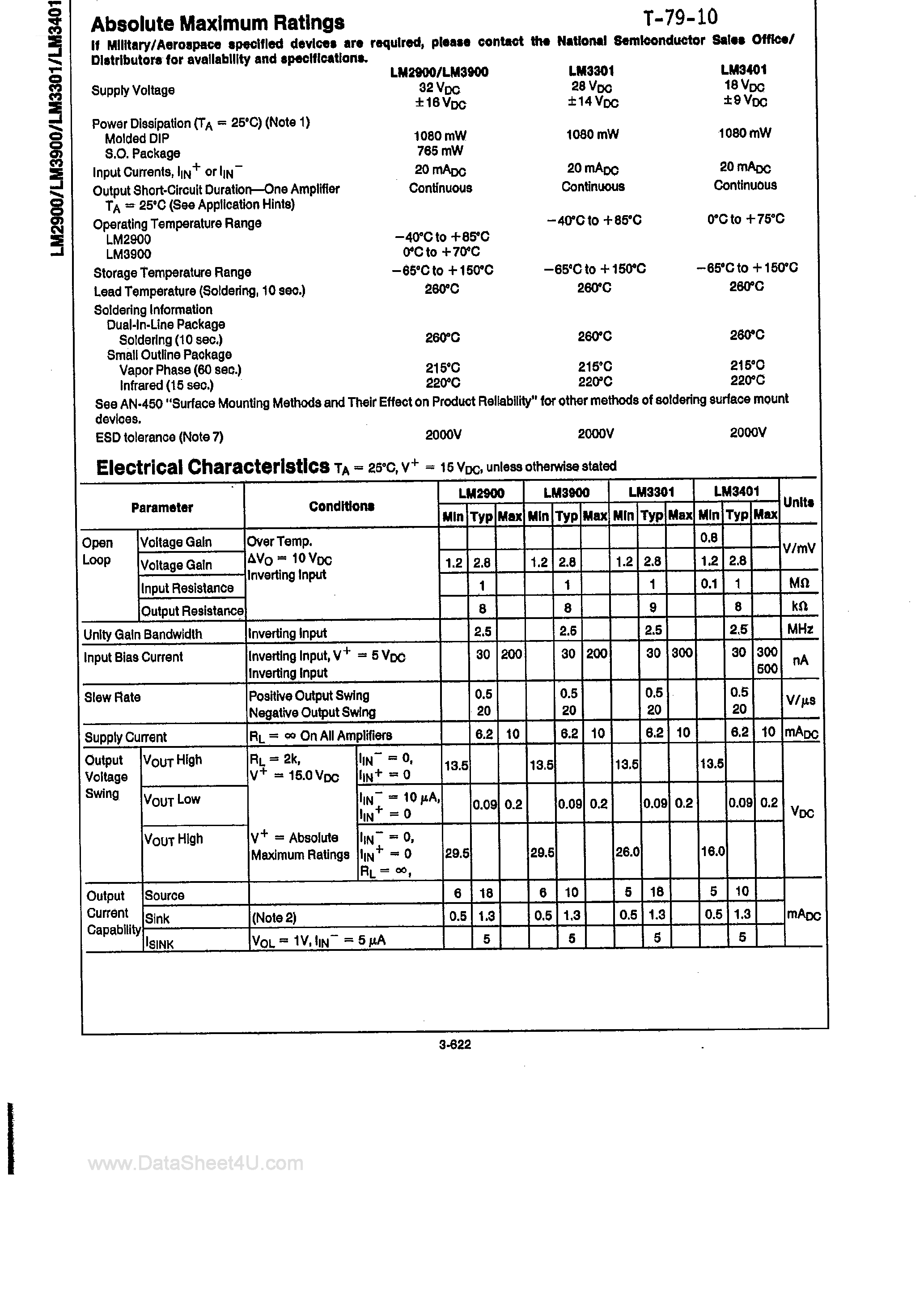 LM3401-(LM3900 / LM3901 / LM3401) Quad Amplifiers