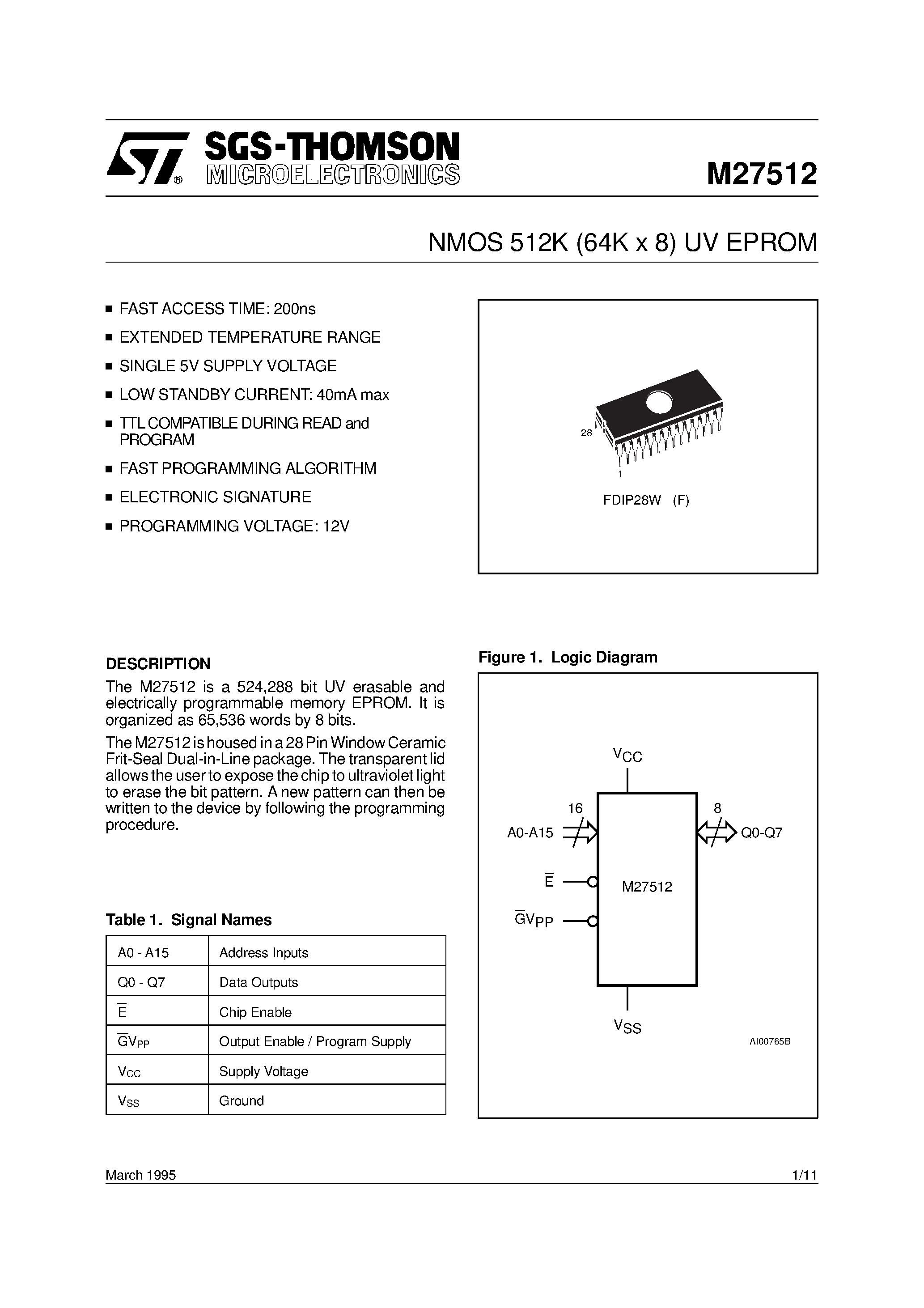 M27512-NMOS 512K 64K x 8 UV EPROM
