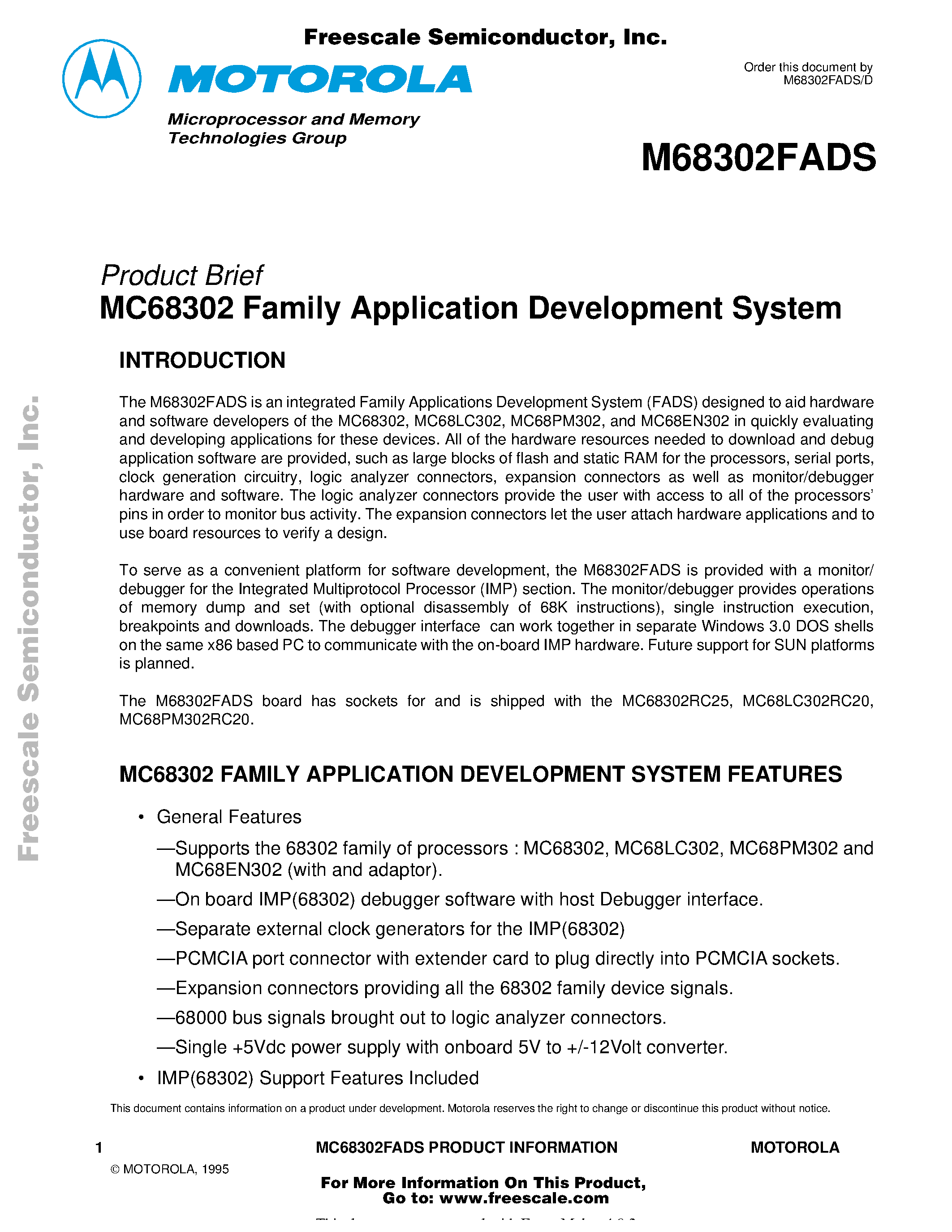 Даташиты (Datasheets M68302FADS) электронных компонентов
