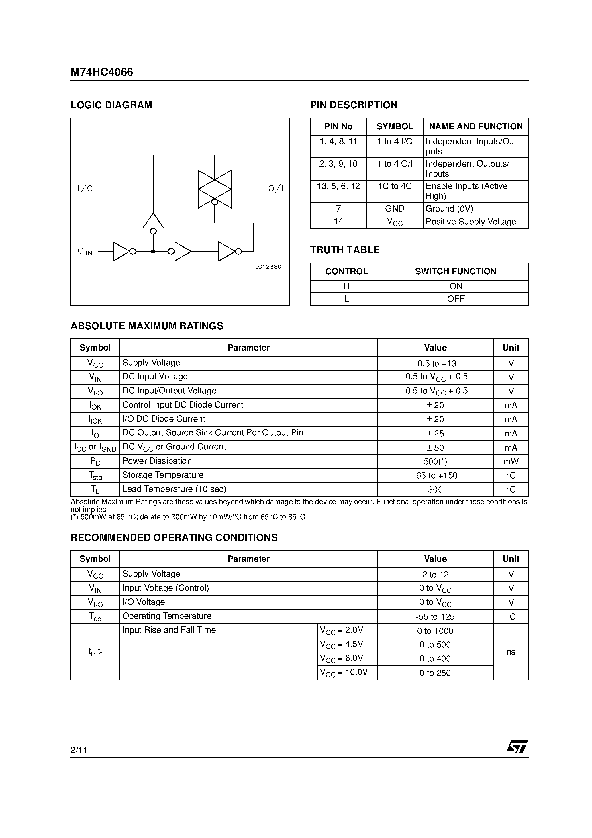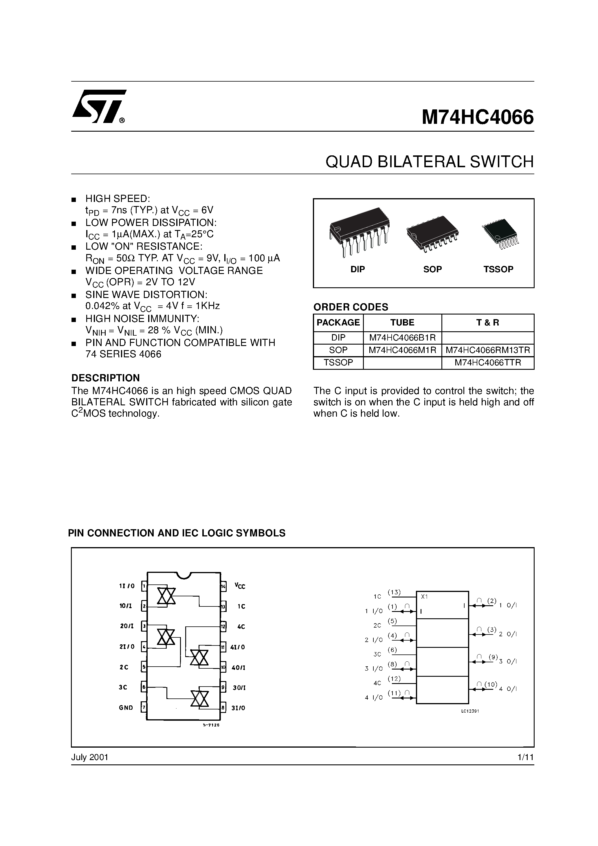 M74HC4066-QUAD BILATERAL SWITCH