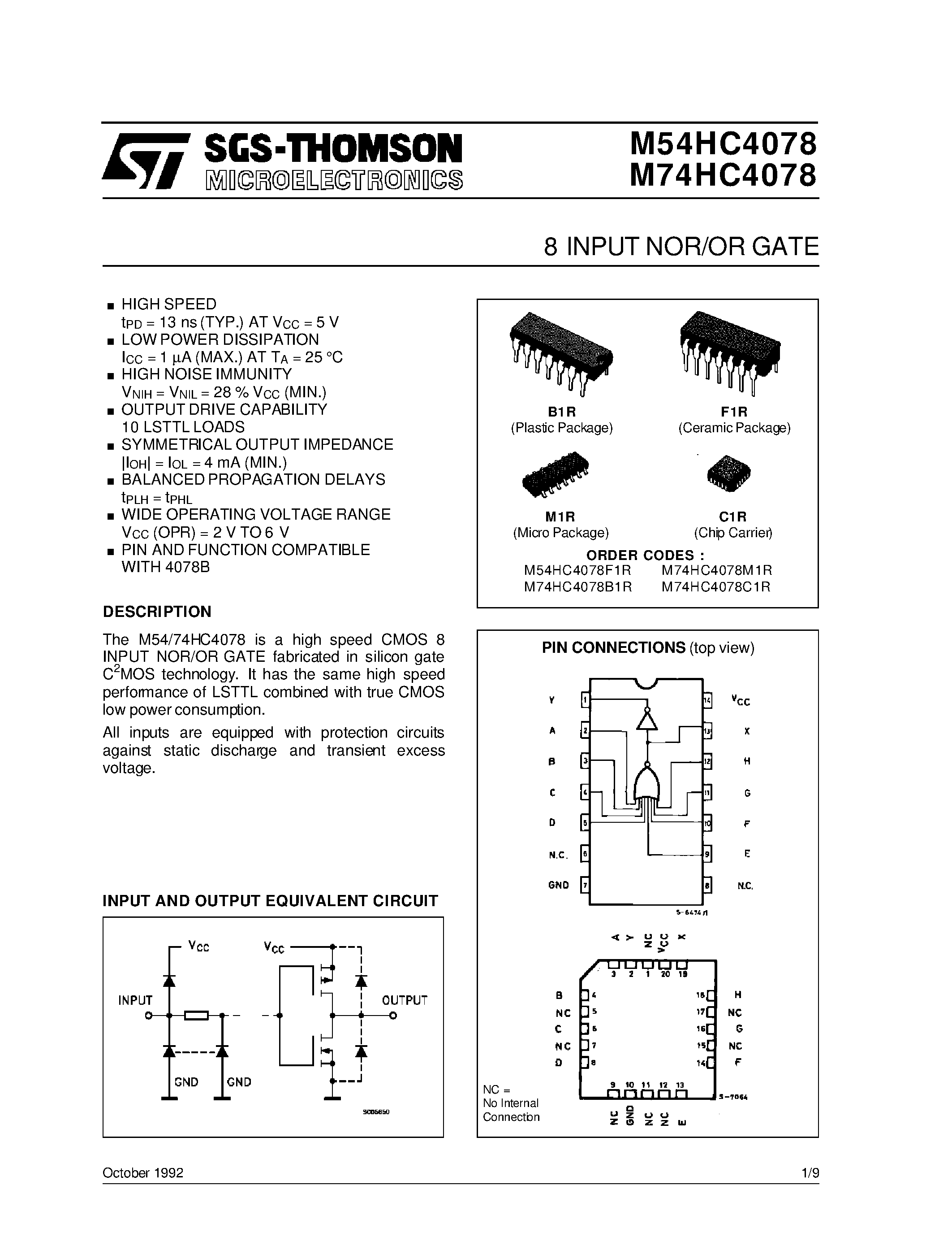 Даташиты (Datasheets M74HC4078) электронных компонентов