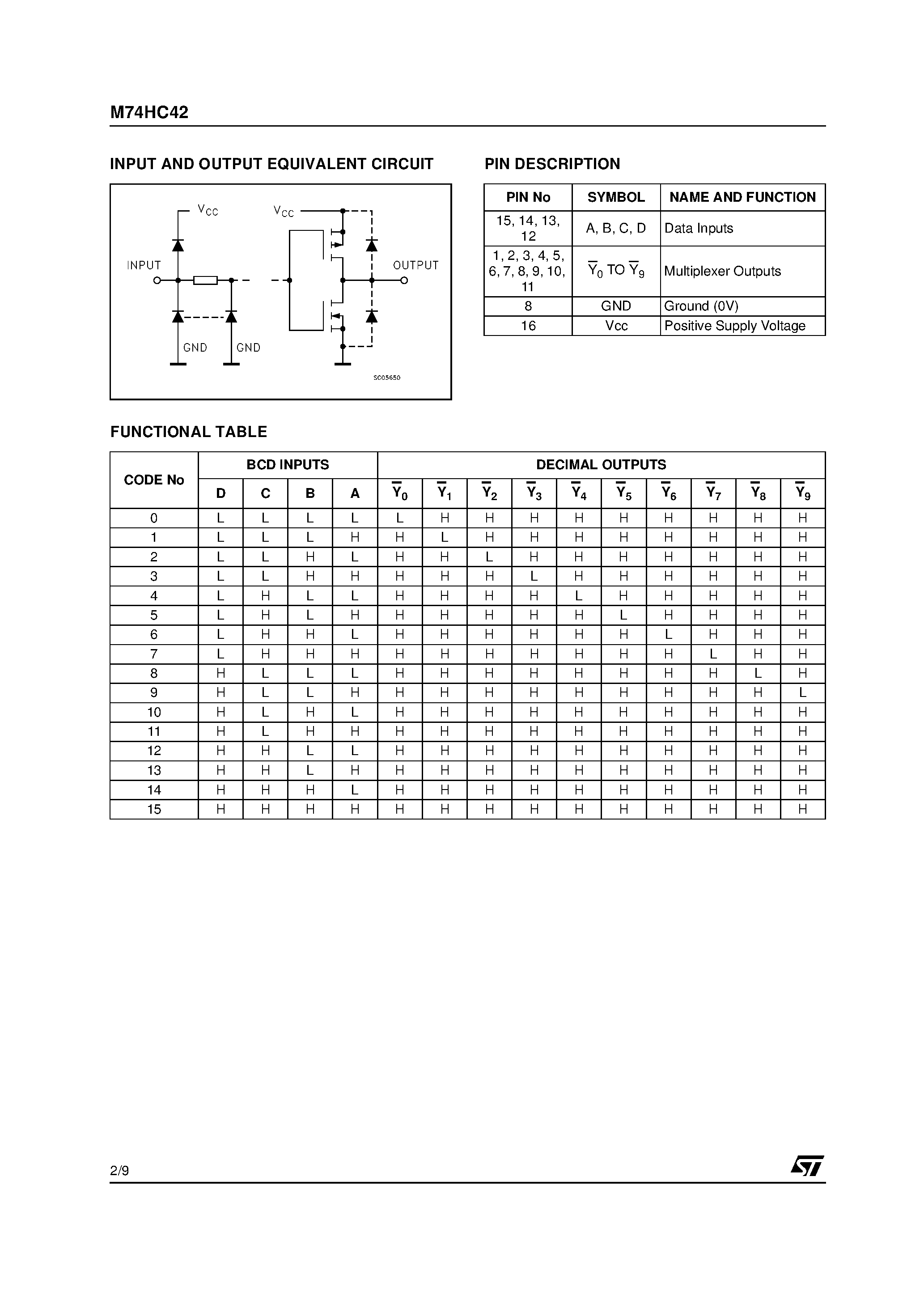 M74HC42-BCD TO DECIMAL DECODER