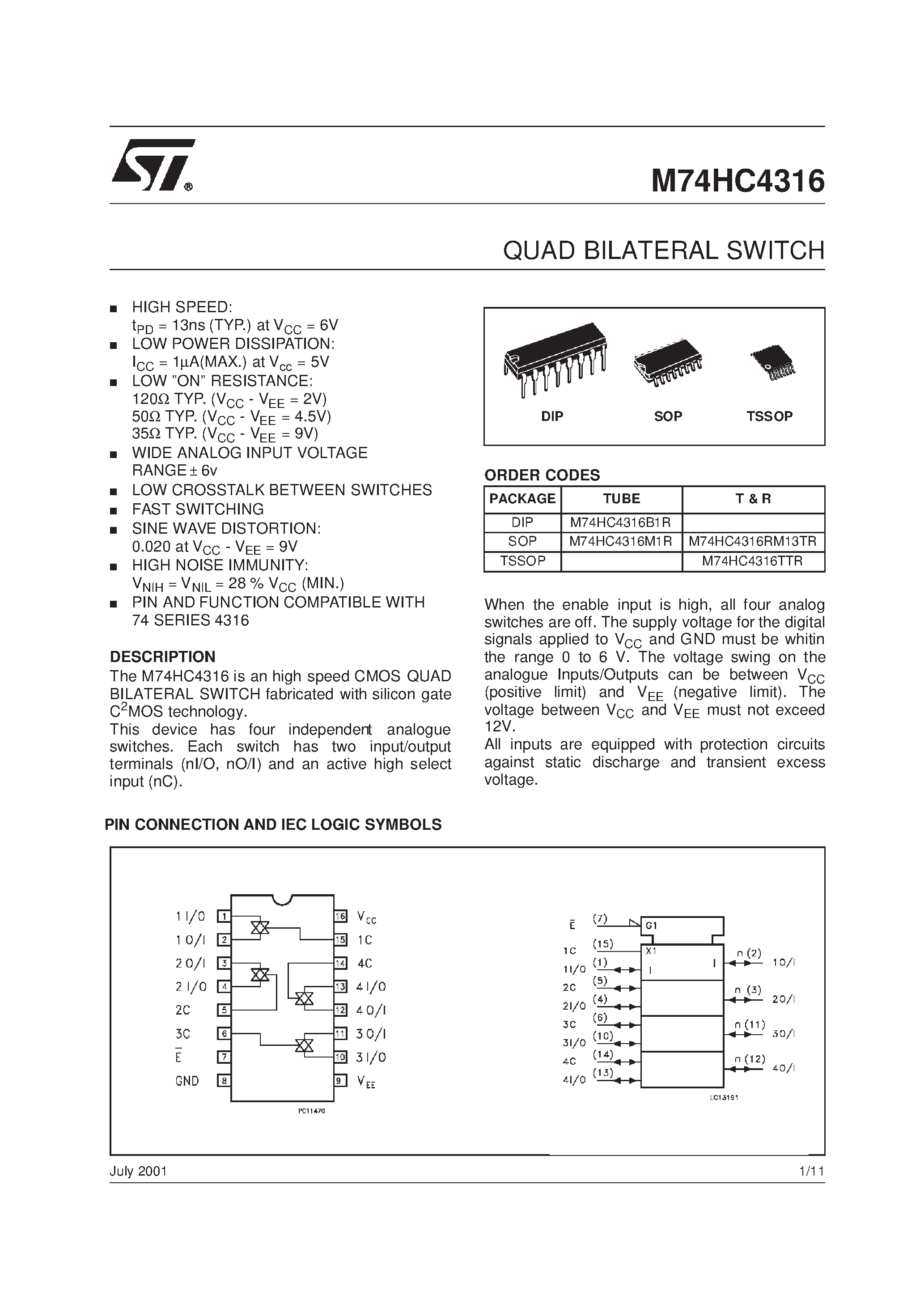 M74HC4316-QUAD BILATERAL SWITCH
