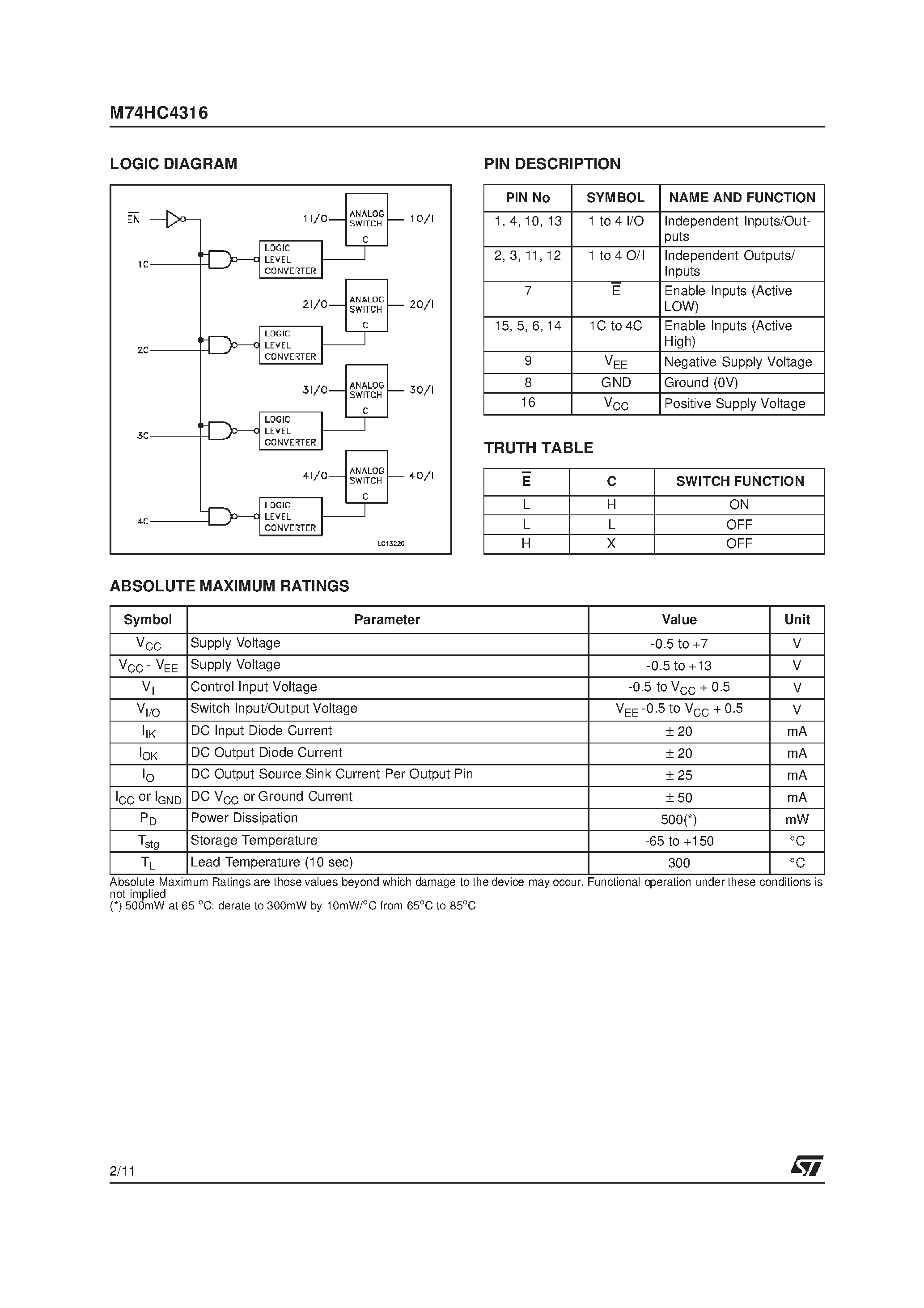 Даташиты (Datasheets M74HC4316) электронных компонентов