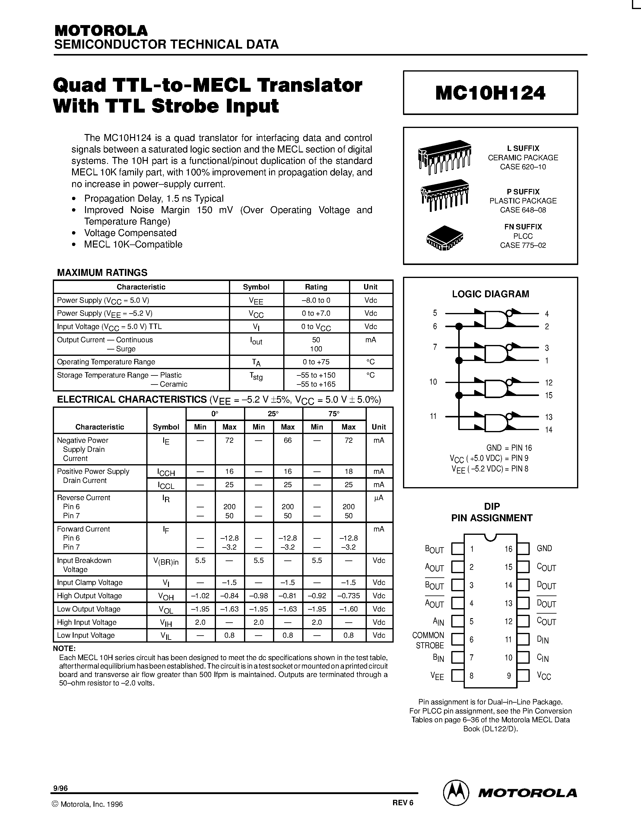 Даташиты (Datasheets MC10H124L) электронных компонентов