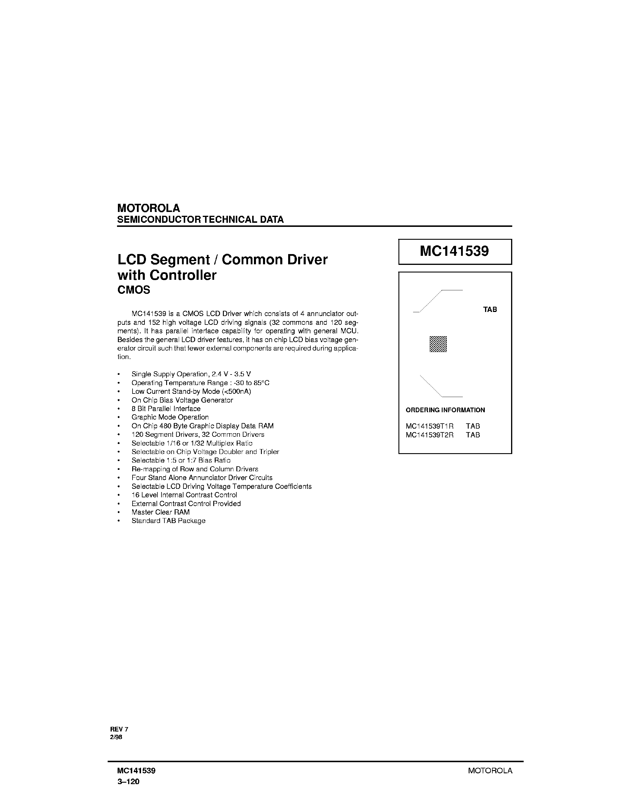 MC141539T1R-LCD Segment / Common Driver with Controller CMOS