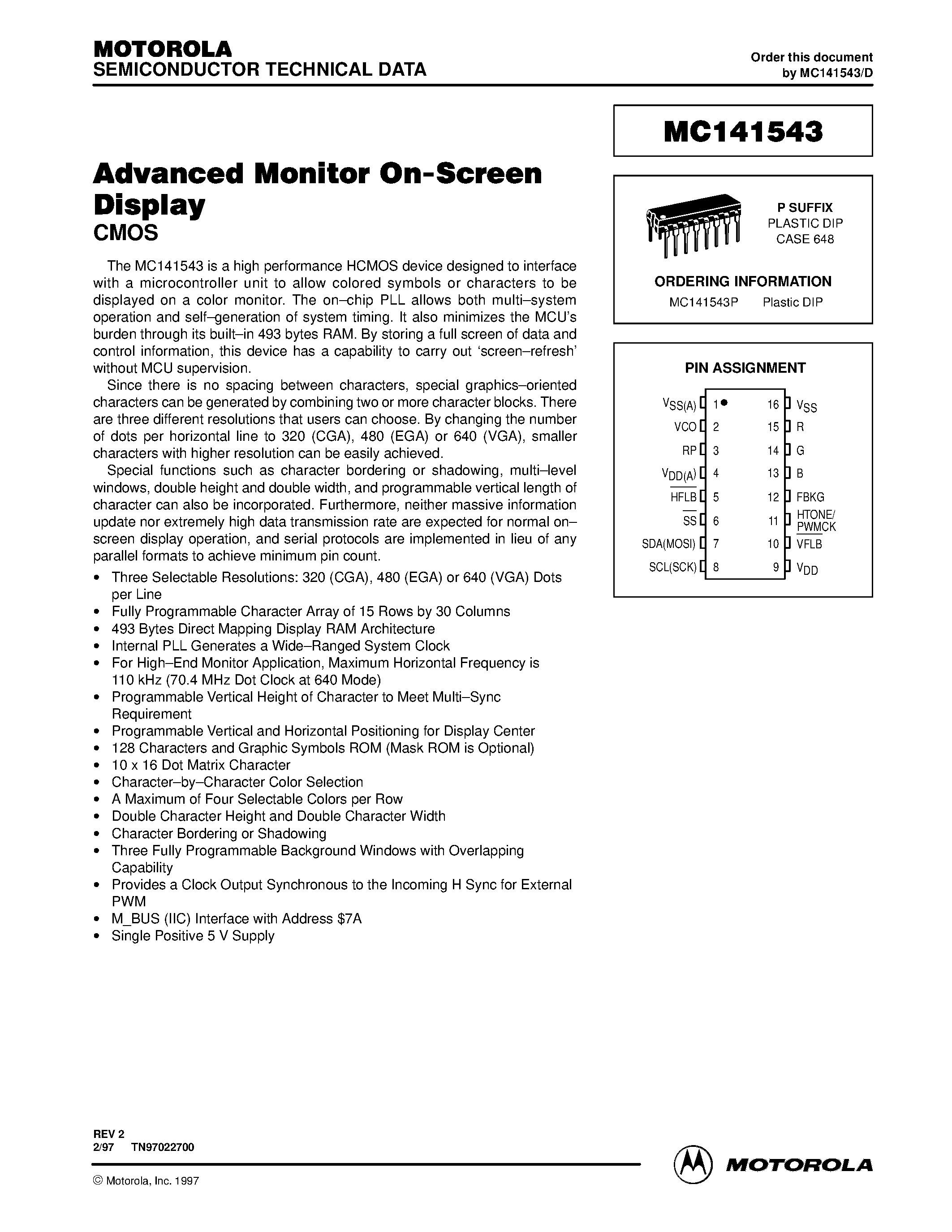 Даташиты (Datasheets MC141543P) электронных компонентов