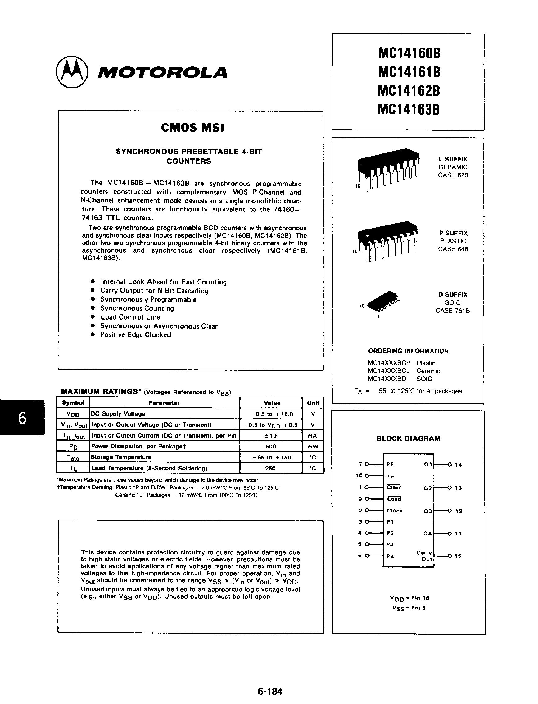 MC14161B-Synchronous Presettable 4-Bit Counters