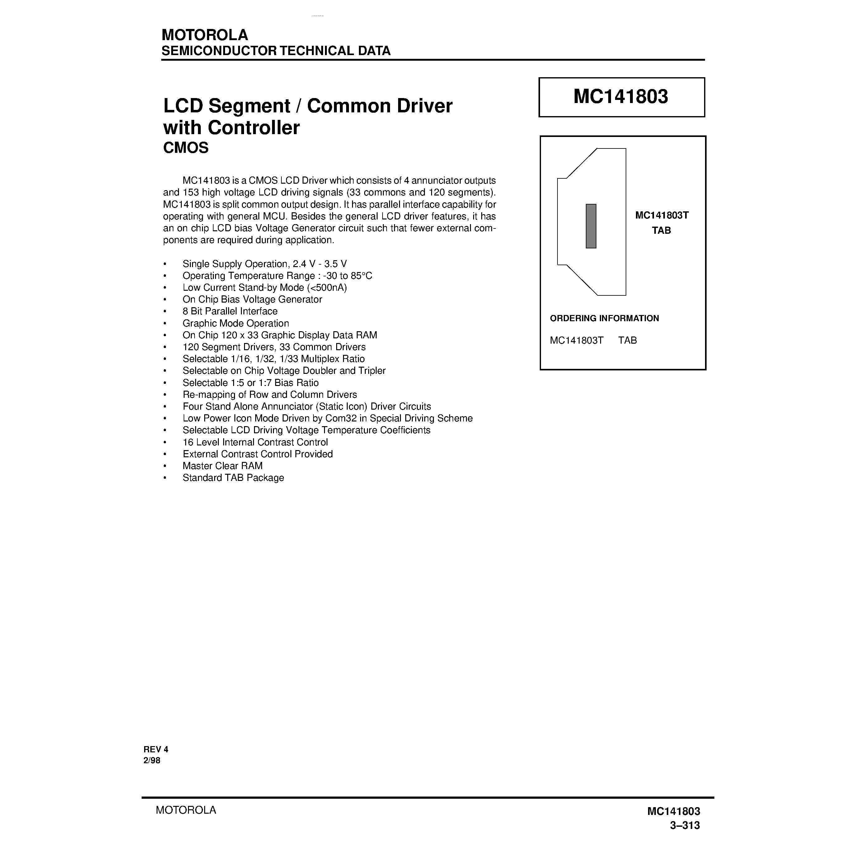 MC141803-LCD Segment / Common Driver