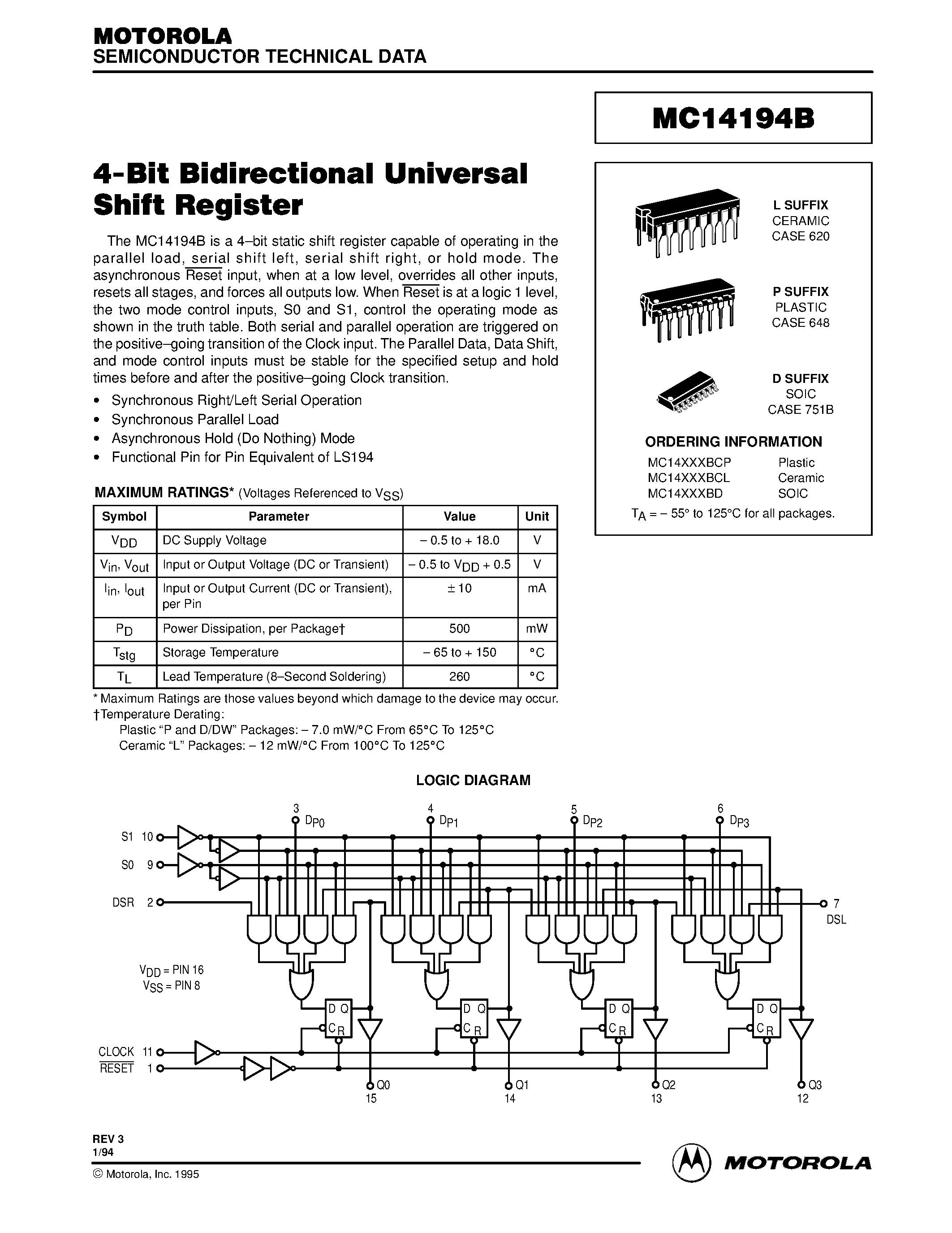 MC14194BCP-4-Bit Bidirectional Universal Shift Register