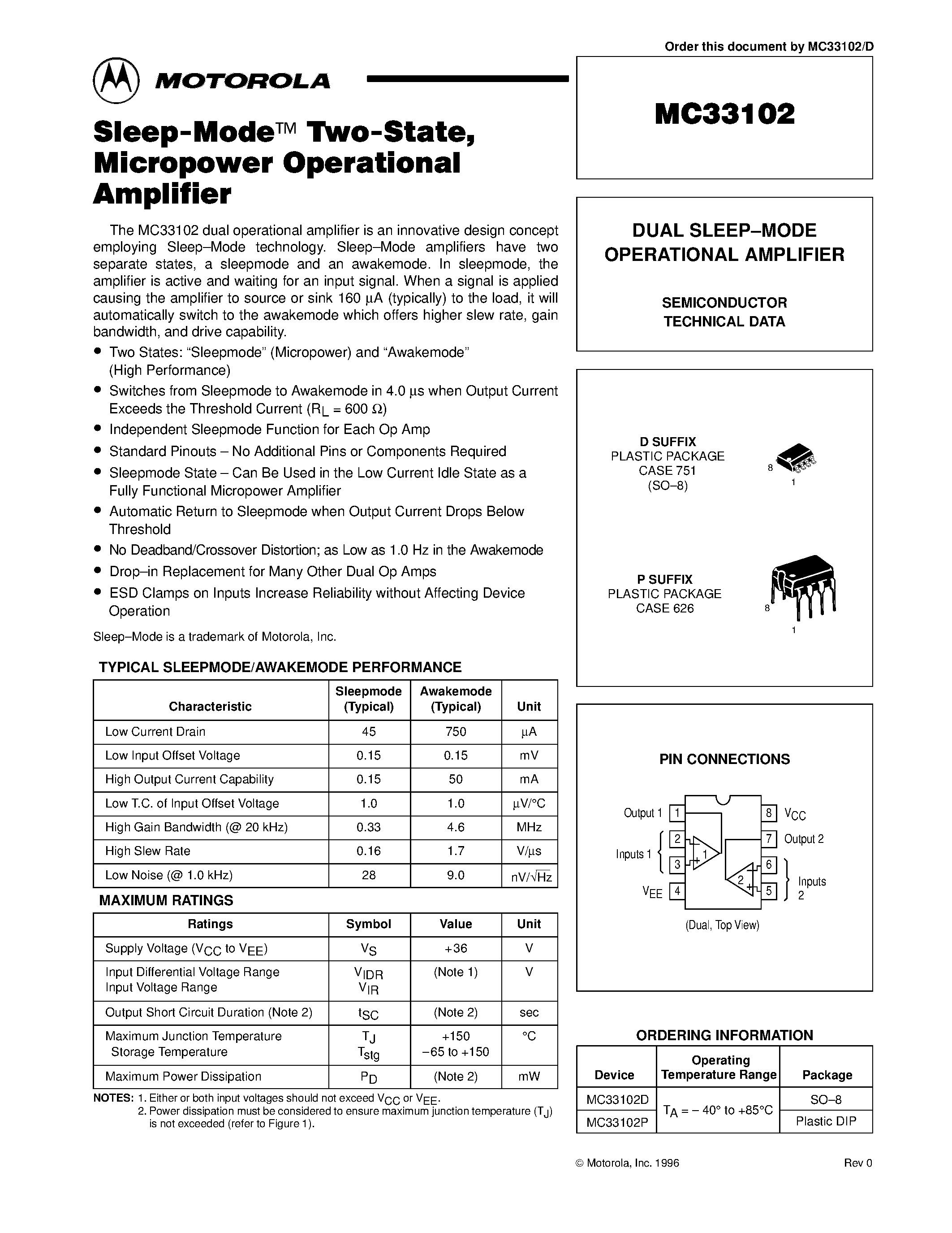 MC33102-DUAL SLEEP-MODE OPERATIONAL AMPLIFIER