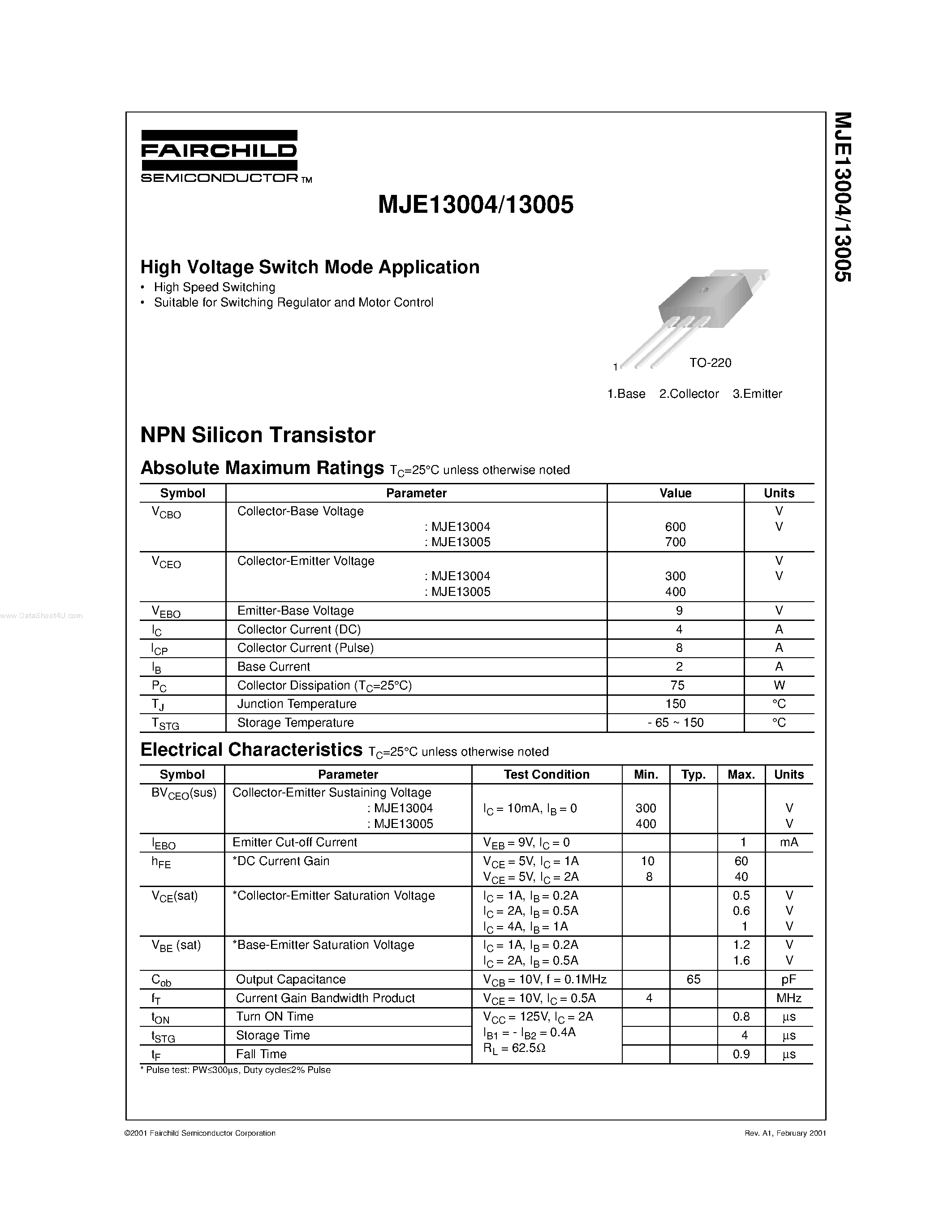 MJE13004-(MJE13004 / MJE13005) High Voltage Switch Mode Application