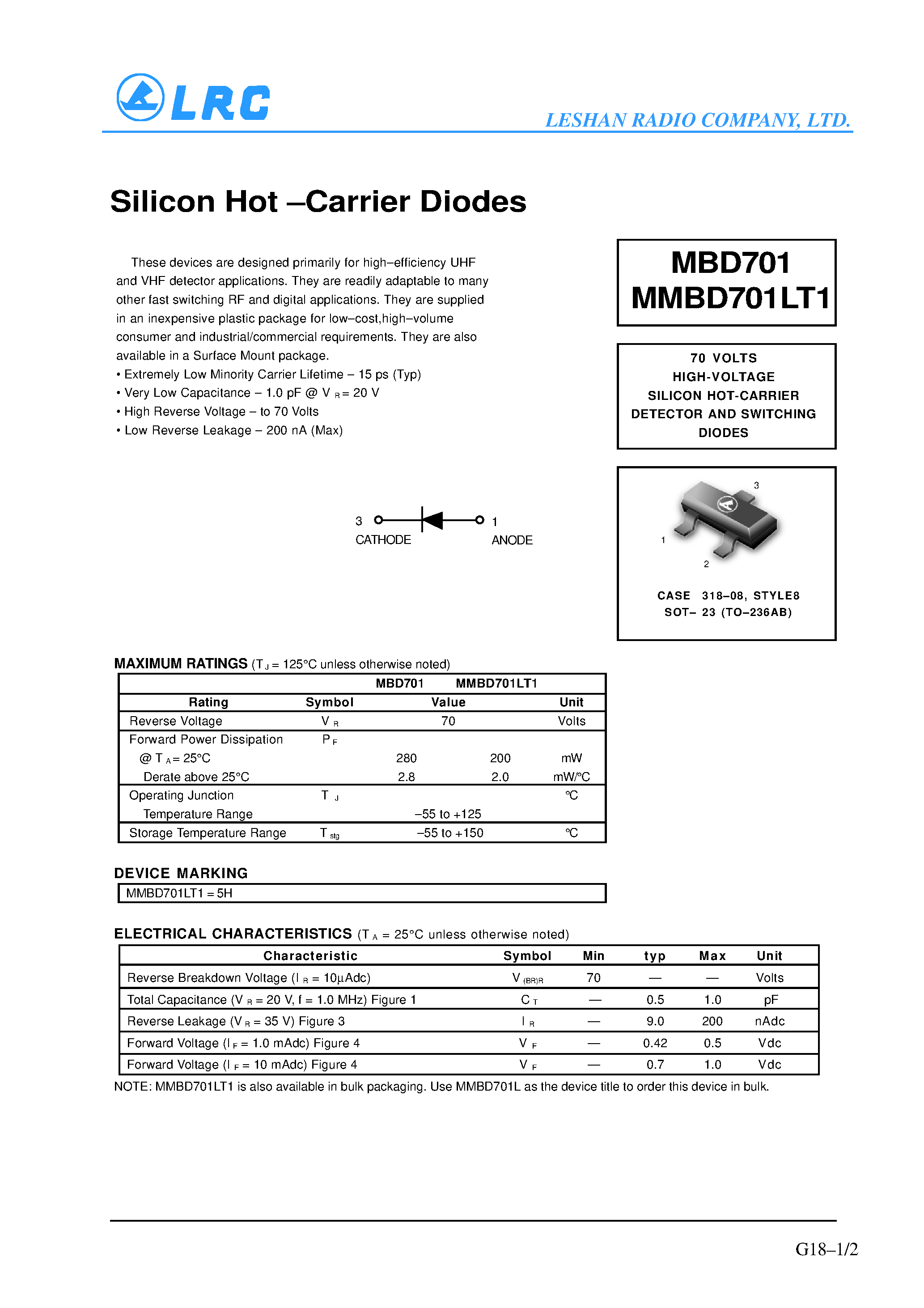 Даташиты (Datasheets MMBD701LT1) электронных компонентов