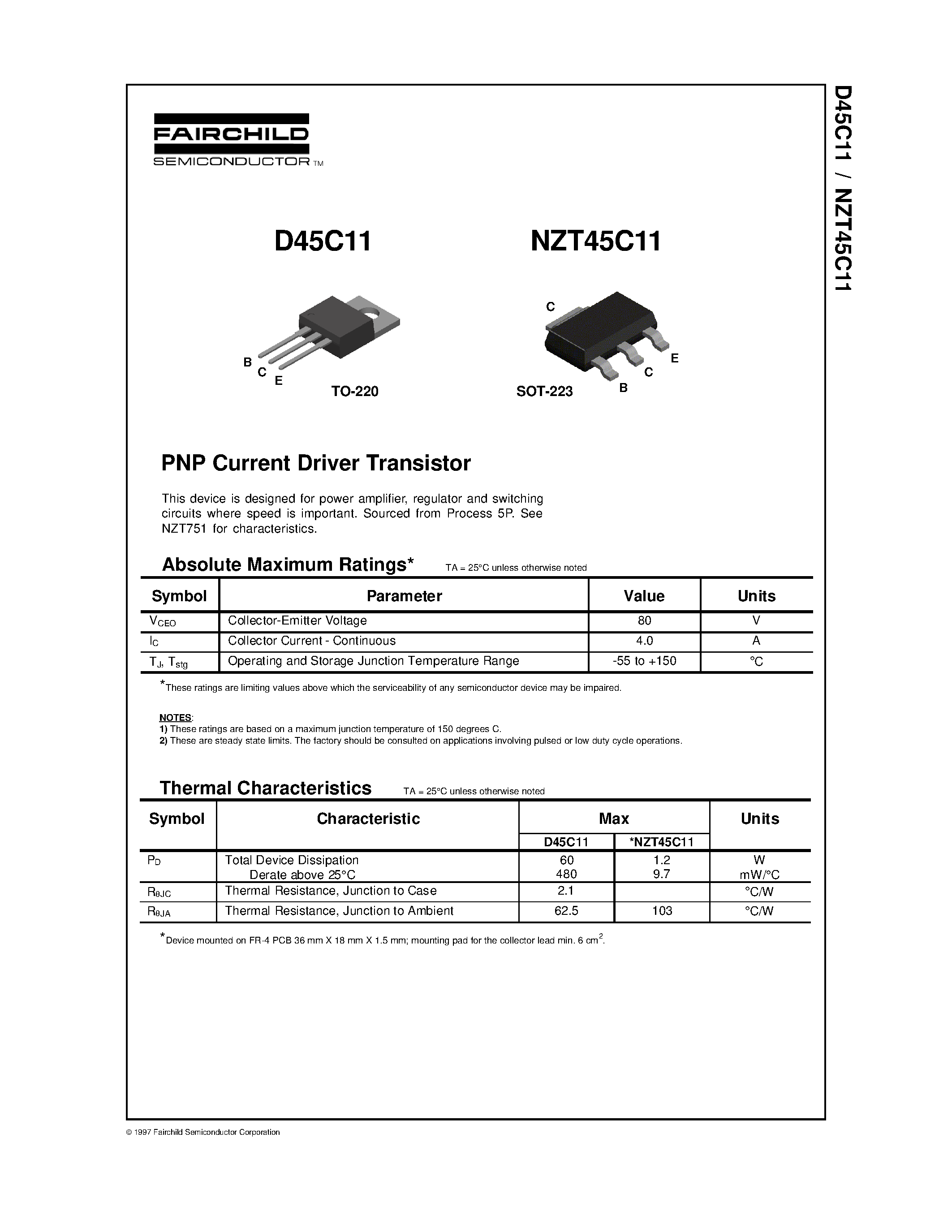 Даташиты (Datasheets NZT45C11) электронных компонентов