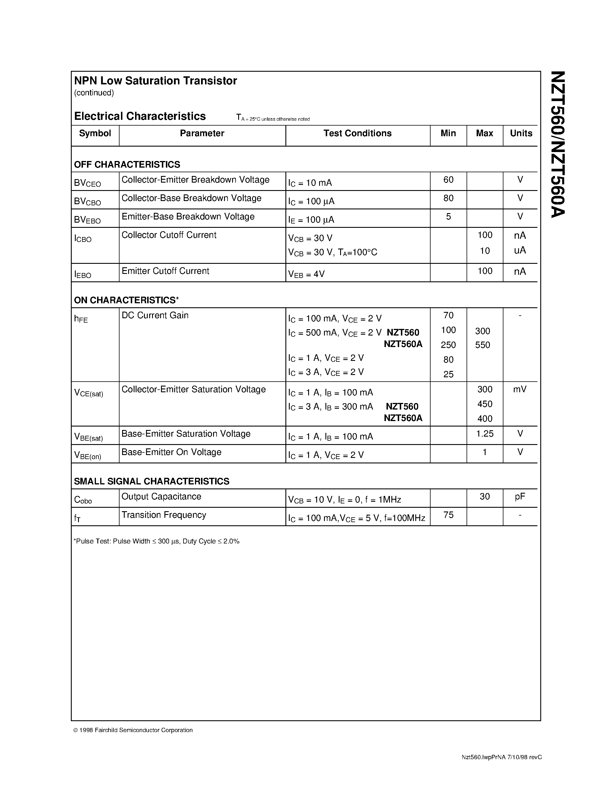 Даташиты (Datasheets NZT560A) электронных компонентов
