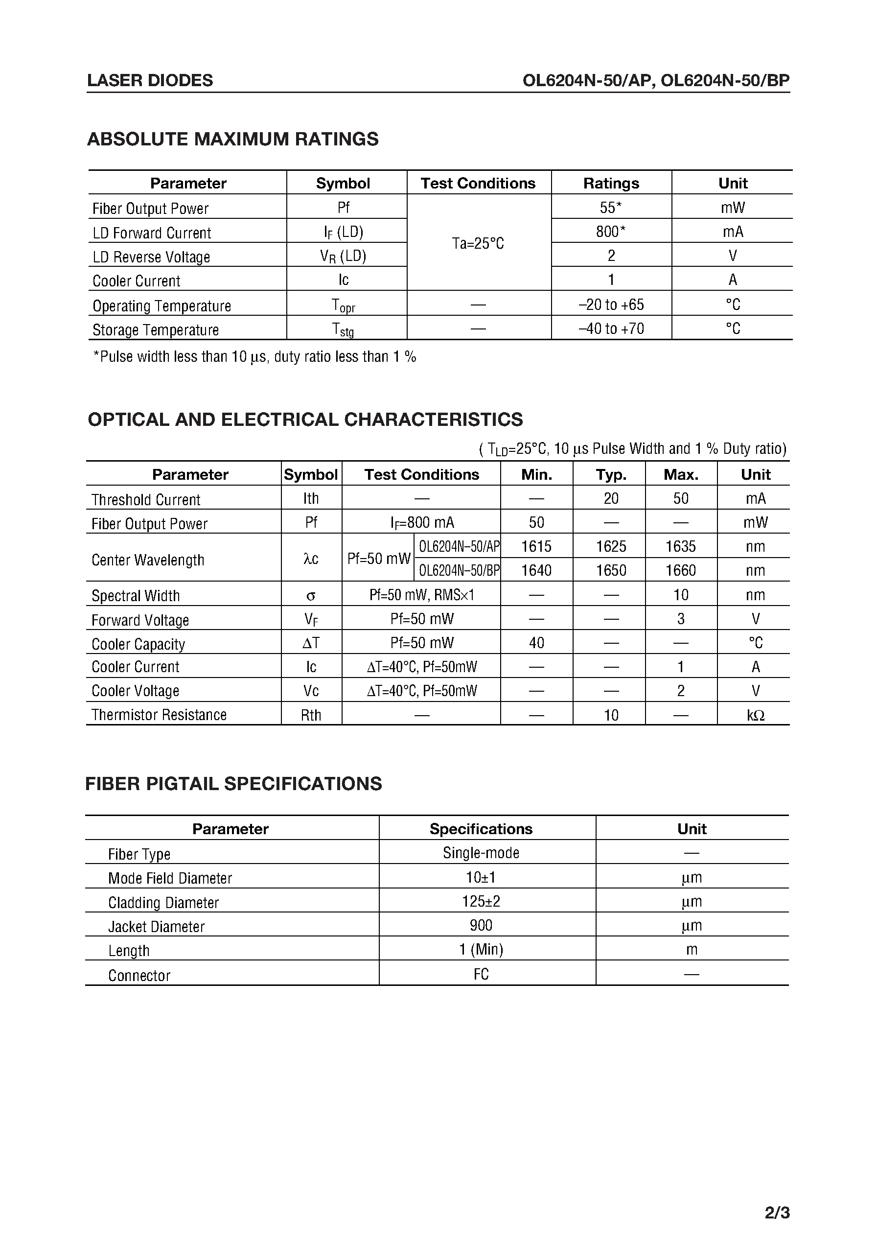 Даташиты (Datasheets OL6204N-50AP) электронных компонентов