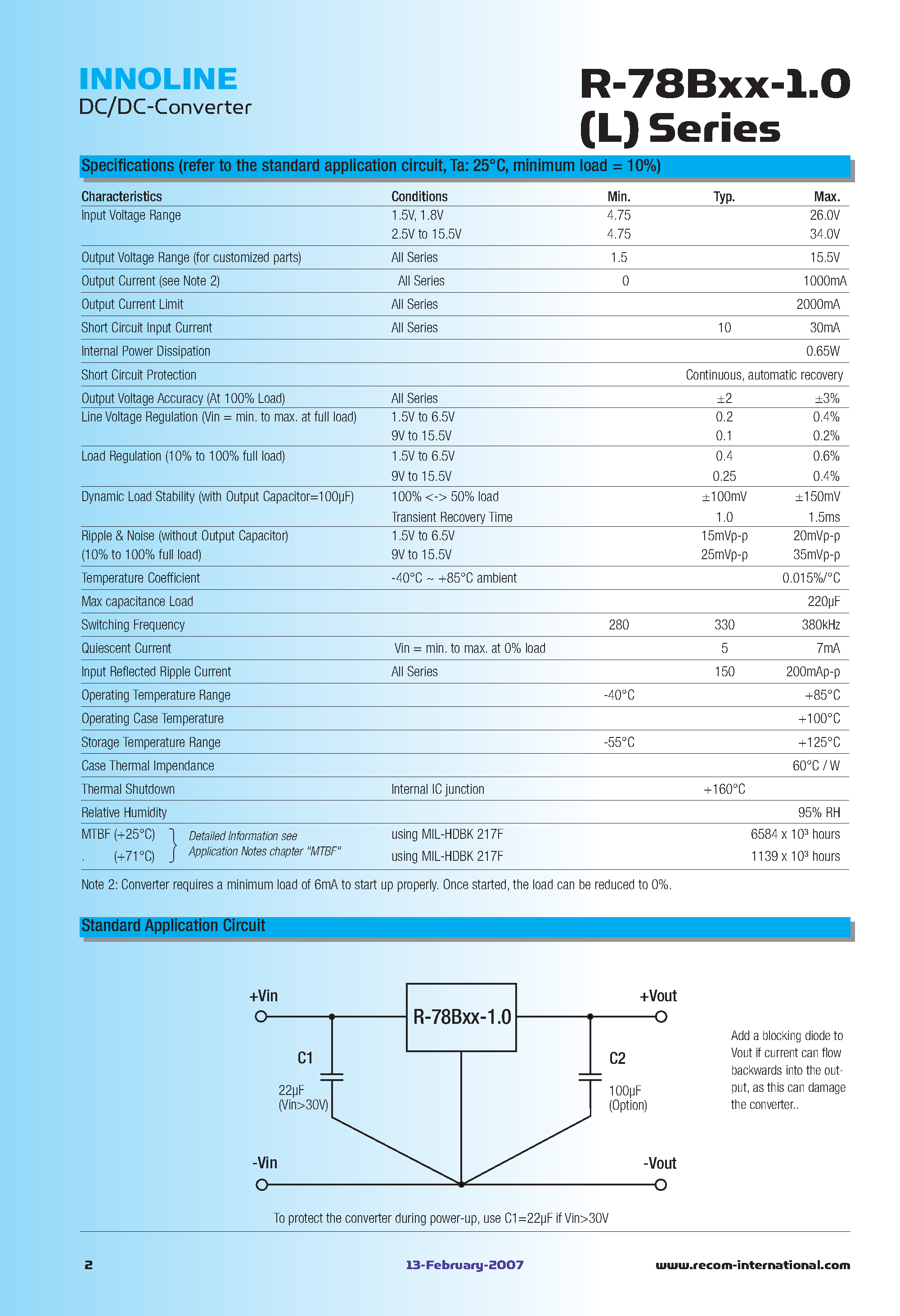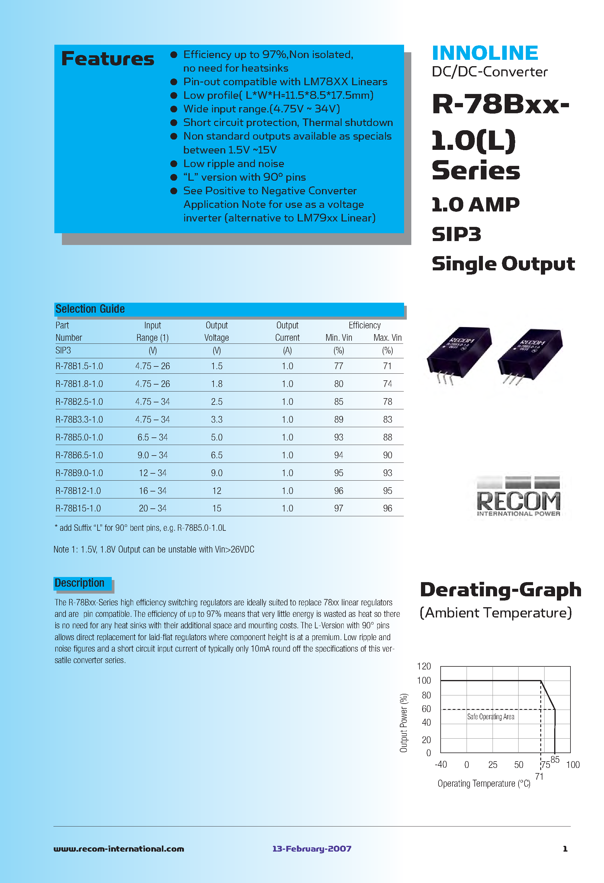 Даташиты (Datasheets R-78B1.5-1.0) электронных компонентов