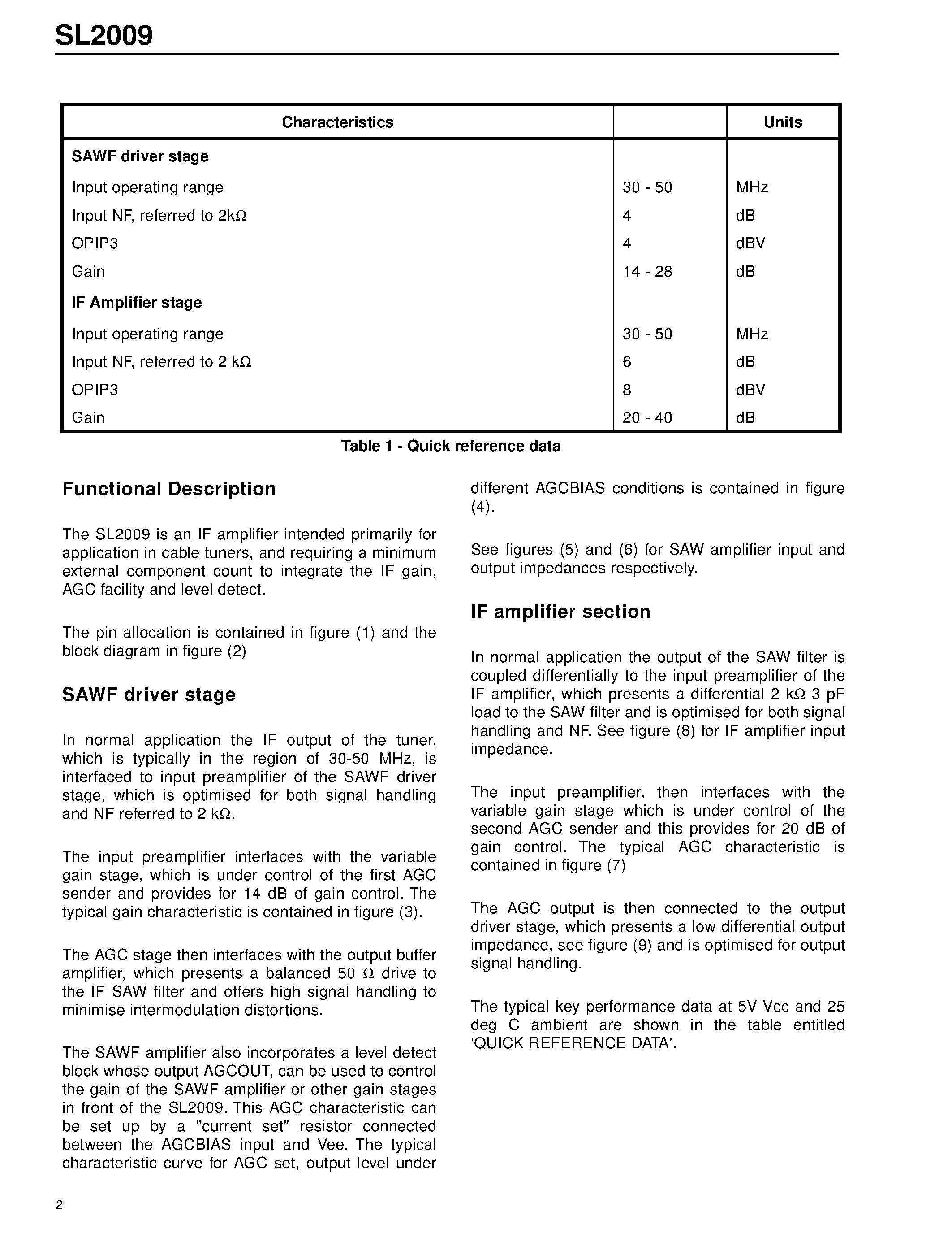 SL2009KG-Dual stage IF amplifier for cable tuners