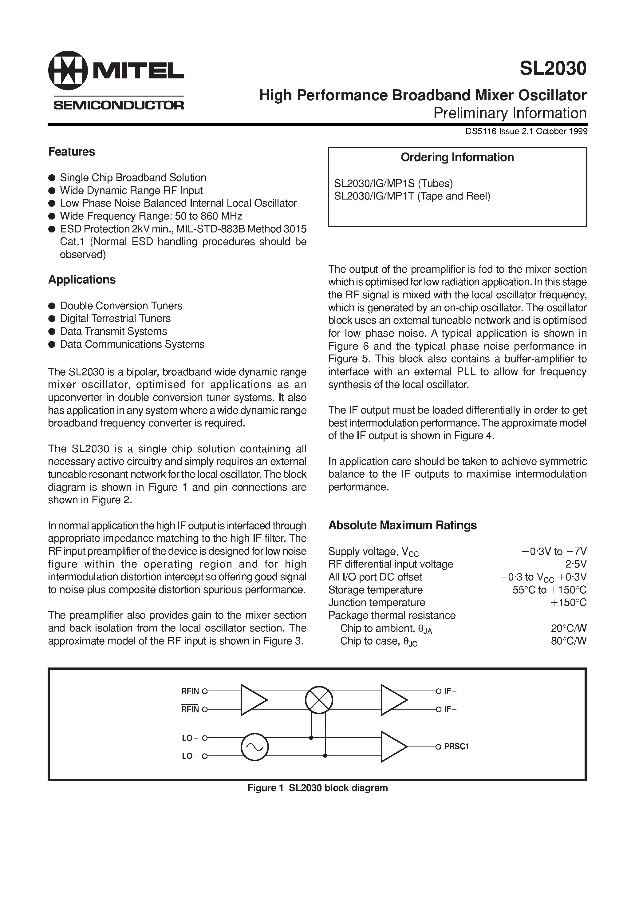SL2030-High Performance Broadband Mixer Oscillator