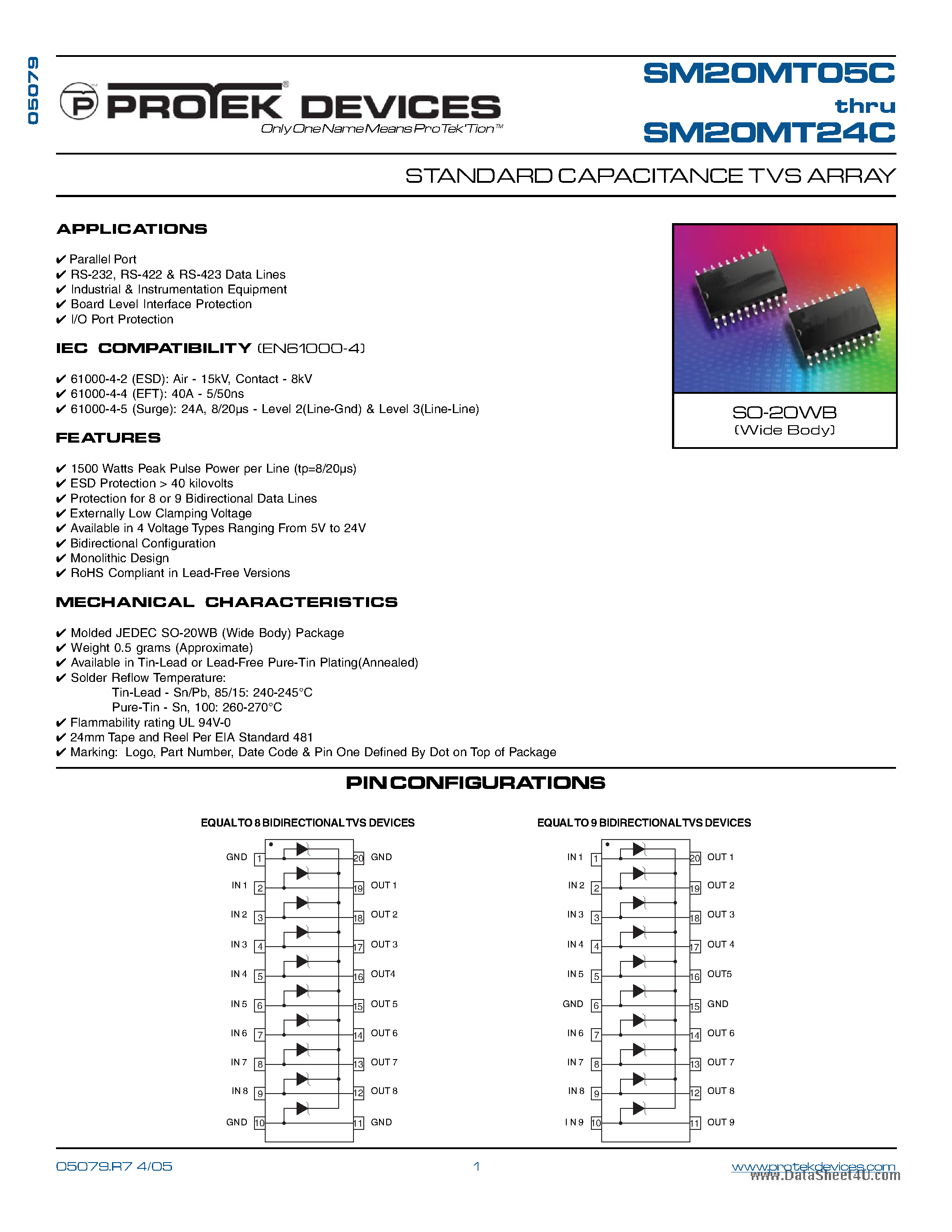 SM20MT05C-(SM20MT05C - SM20MT24C) STANDARD CAPACITANCE TVS ARRAY