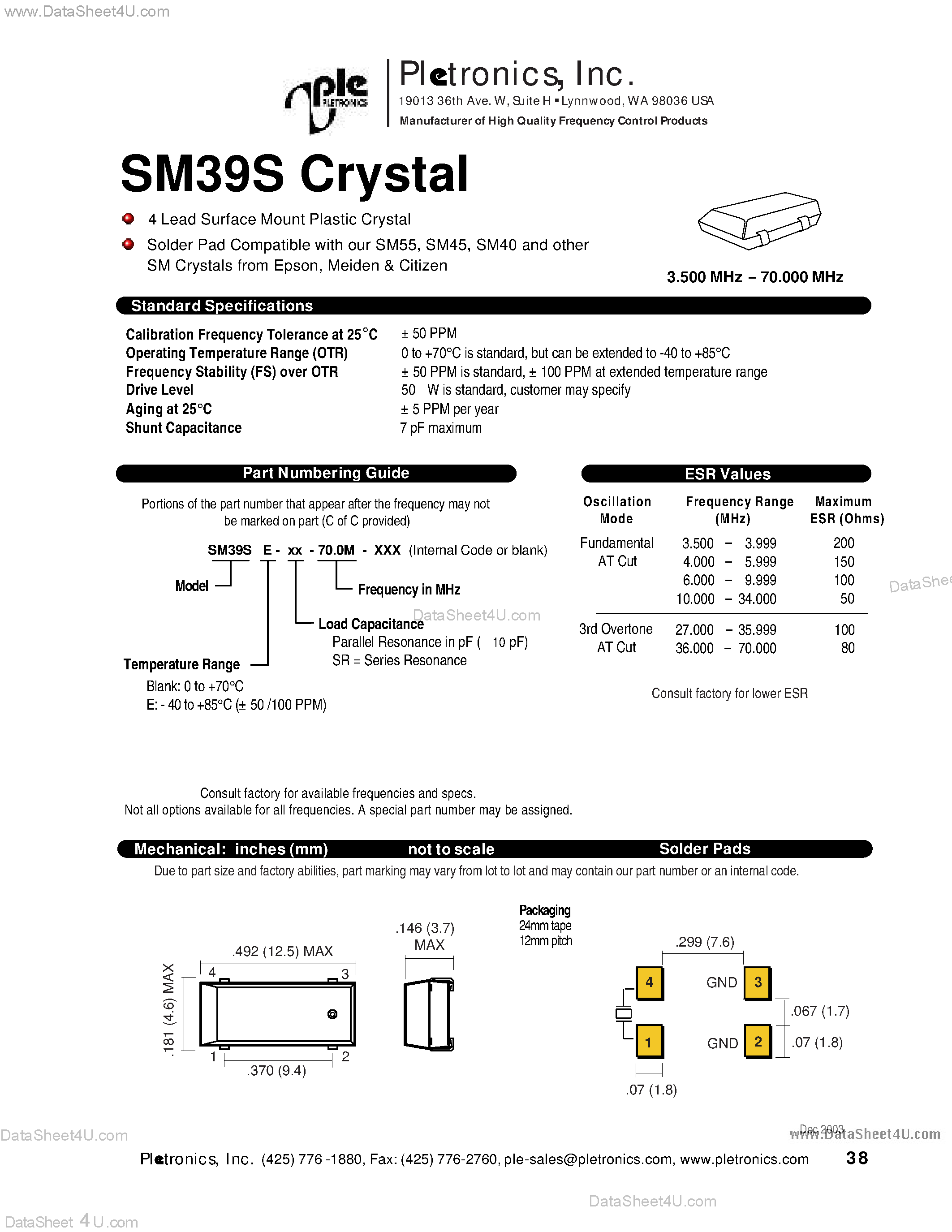 SM39S-4 Lead Surface Mount Plastic Crystal